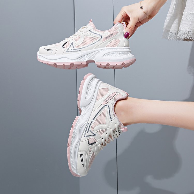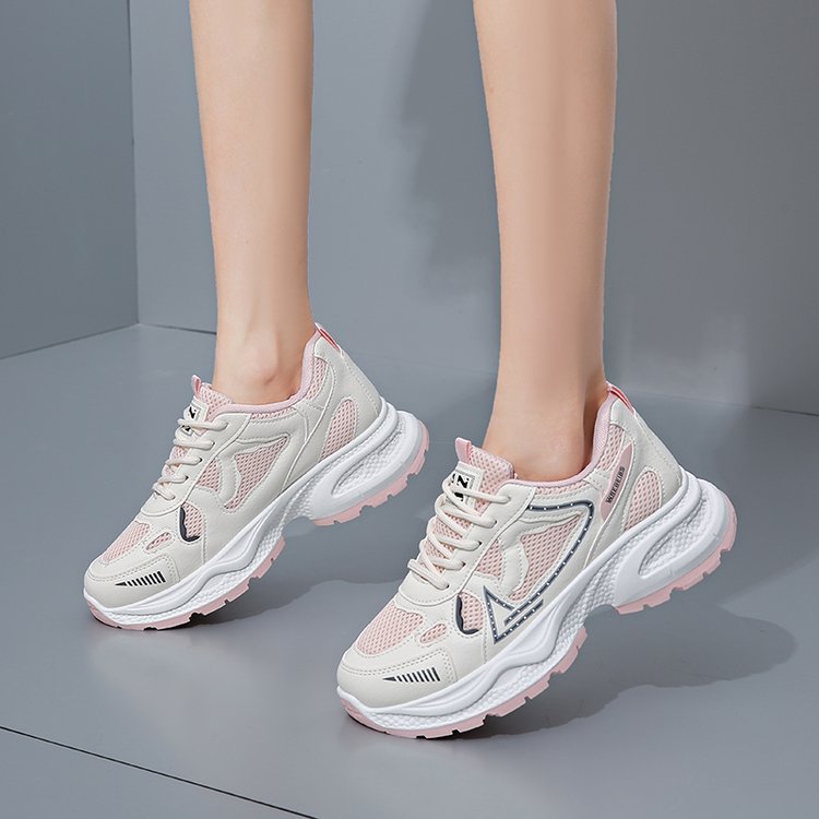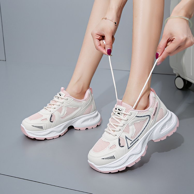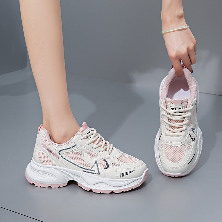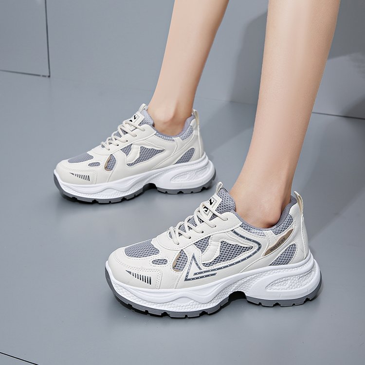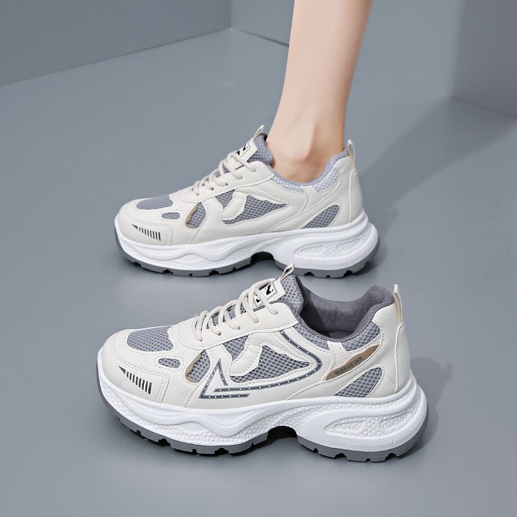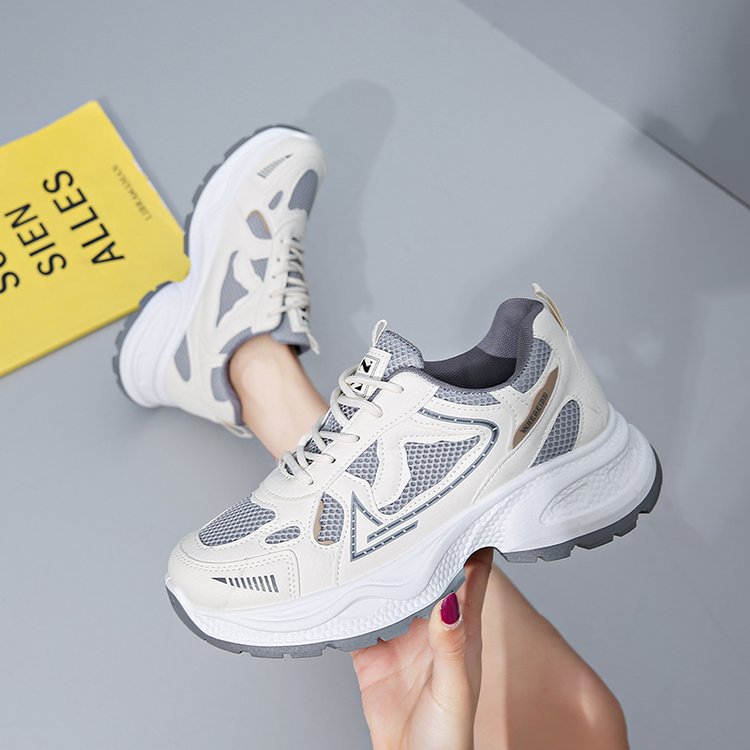 여성을위한 작은 두꺼운 밑창 아빠 신발 2025 봄 새로운 복고풍 대비 색상 캐주얼 여성 신발 학생 신장 증가 운동화스토어 가기