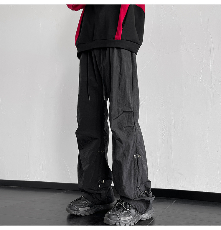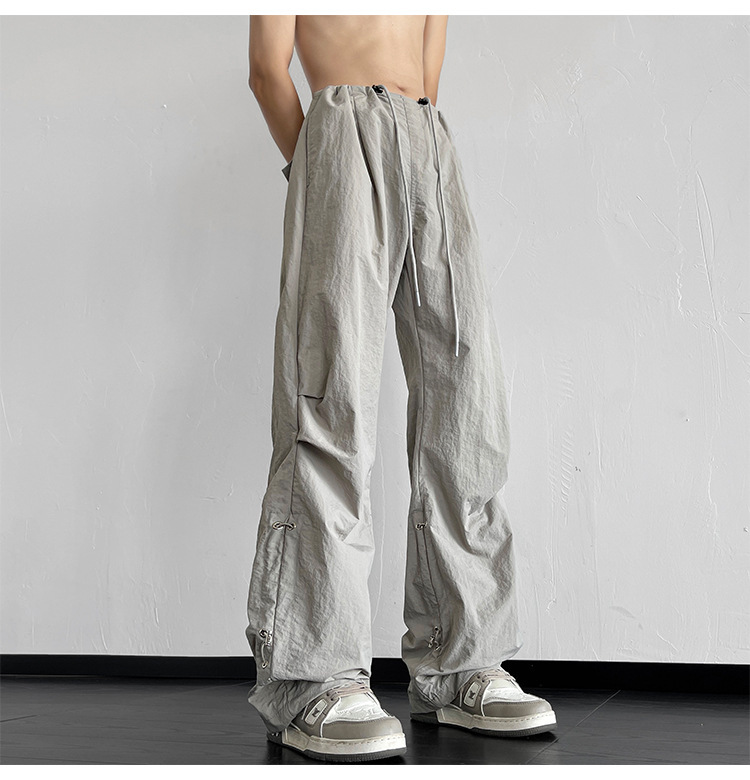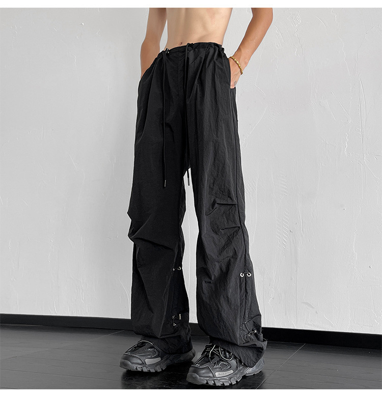 아메리칸 하이 스트리트 바이브 속건성 남성용 여름 아웃도어 스포츠 긴 바지 루즈 캐주얼 드로스트링 오버올