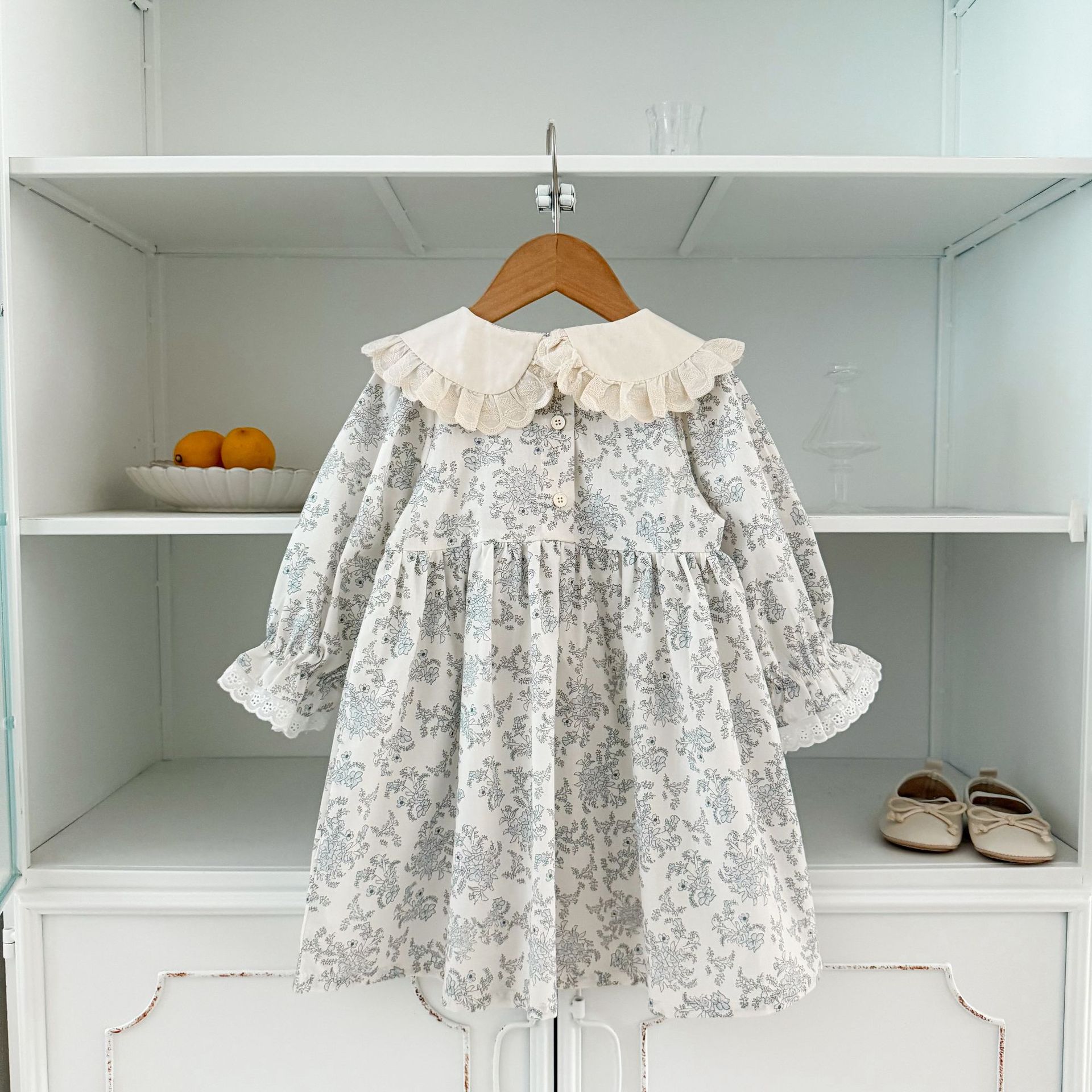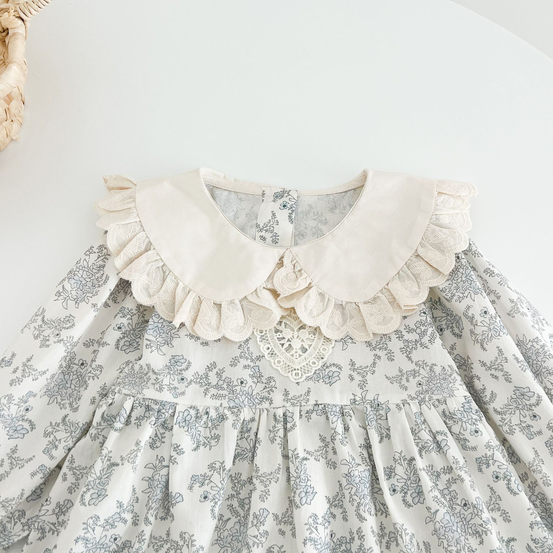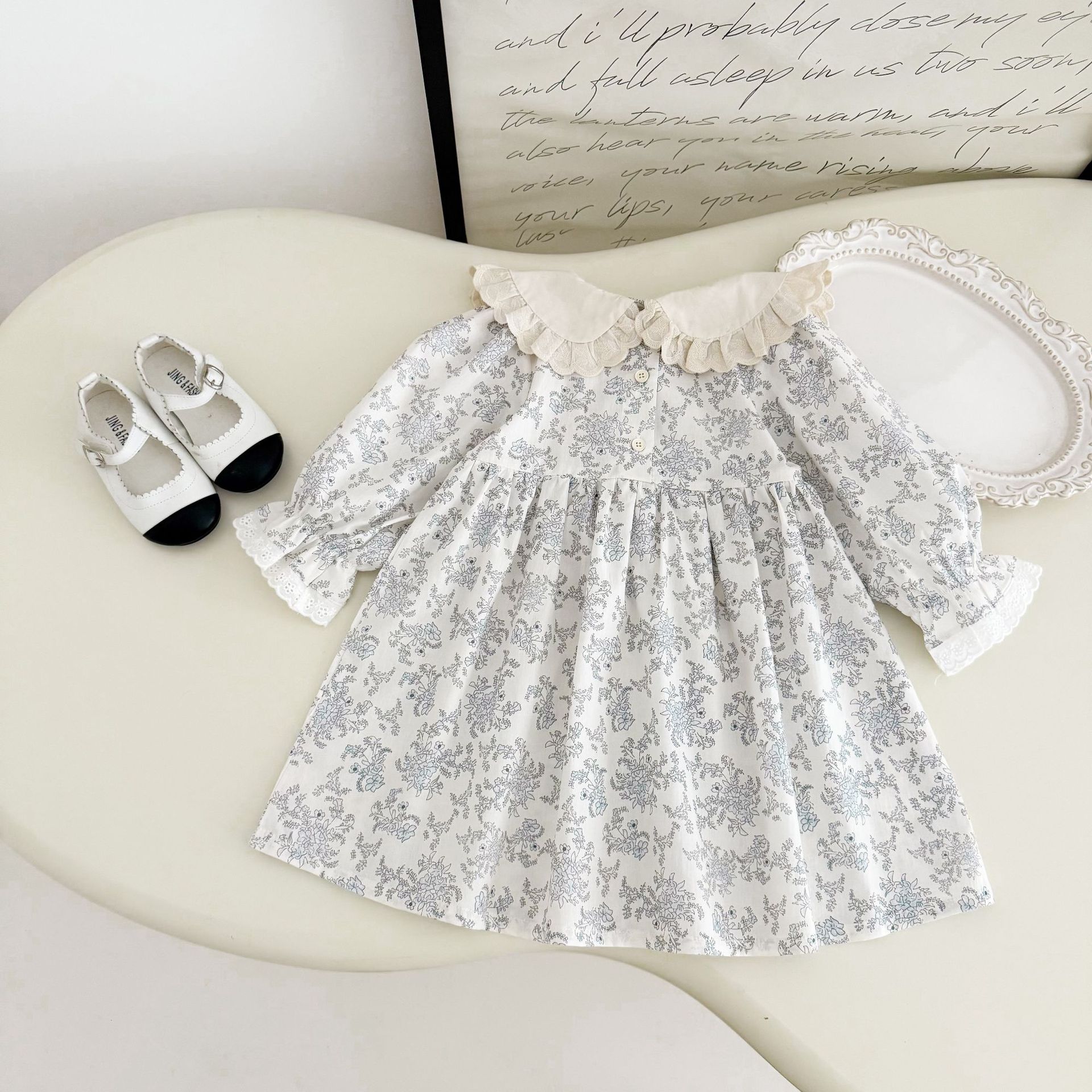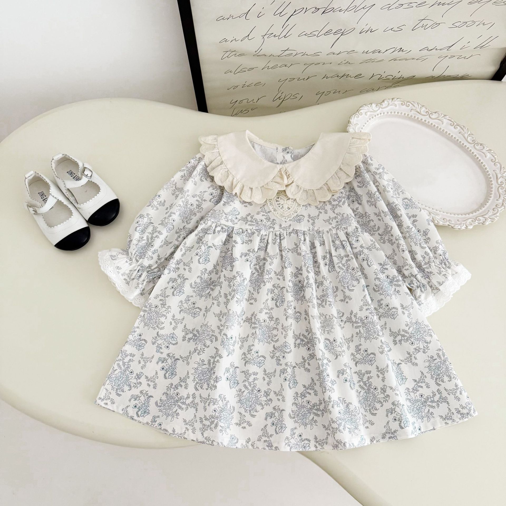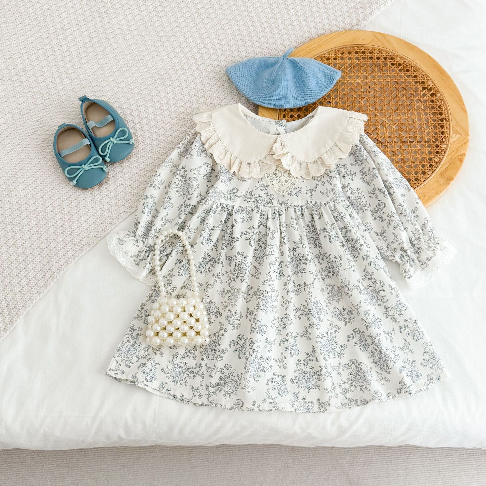 소녀 모리 플로랄 원피스 봄과 가을 새로운 어린이 서양식 레이스 인형 칼라 베이비 코튼 대외 무역을위한 긴 원피스스토어 가기