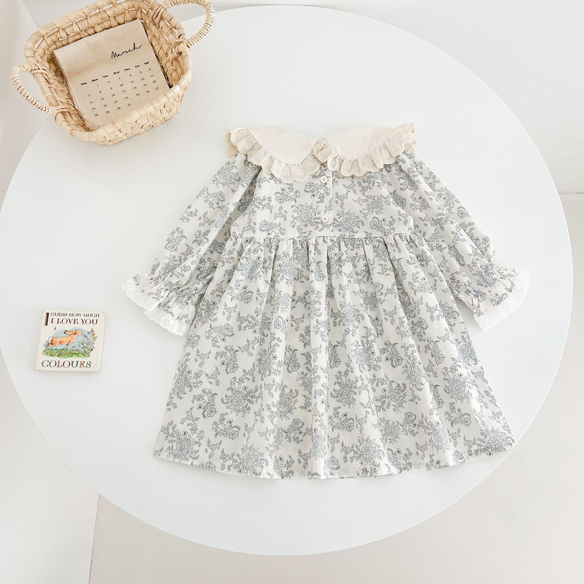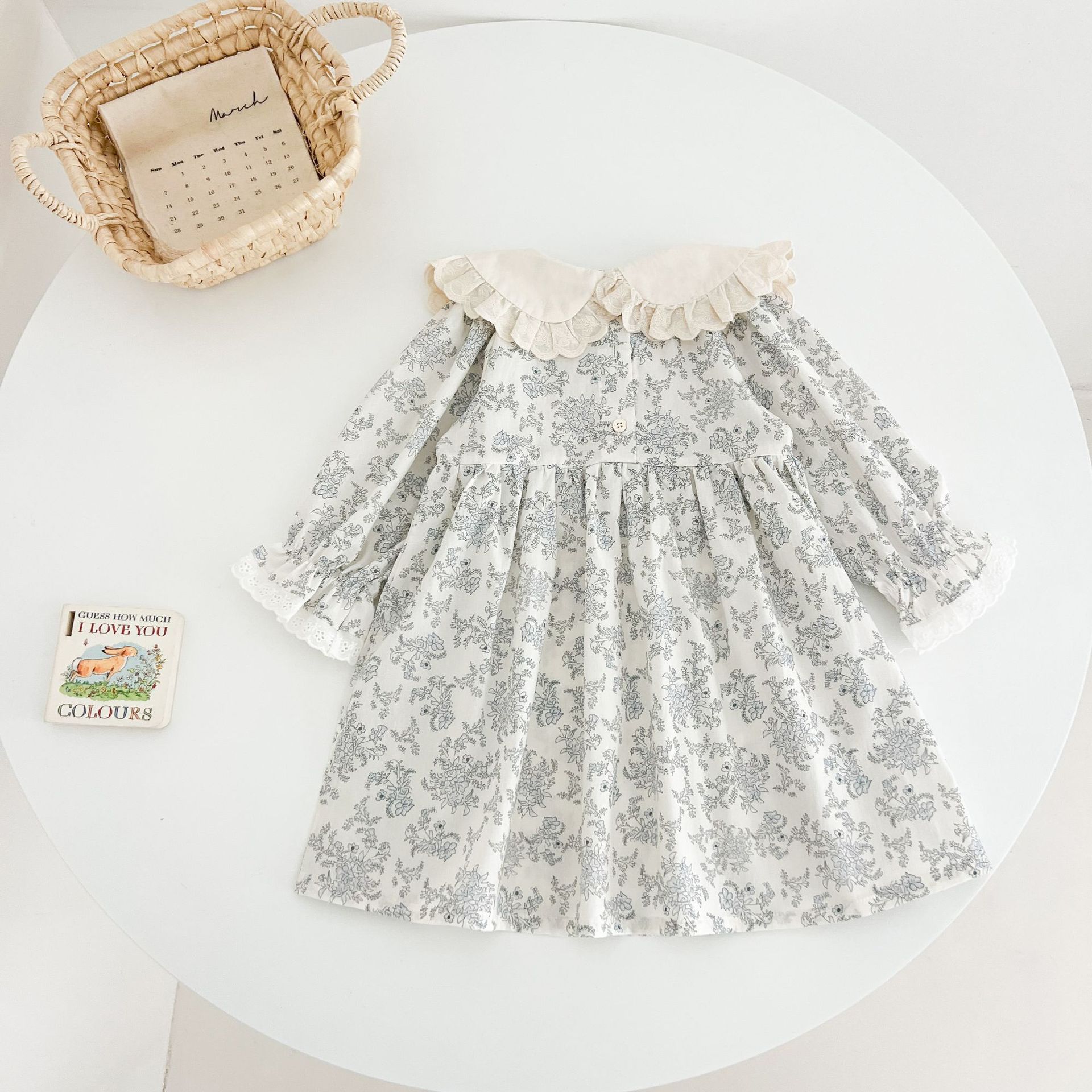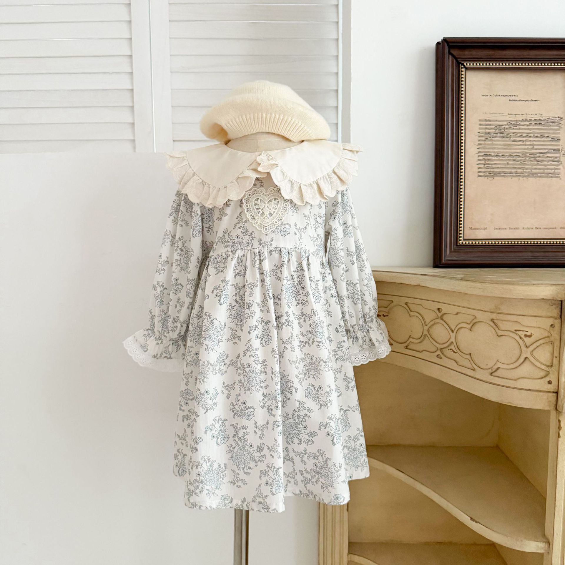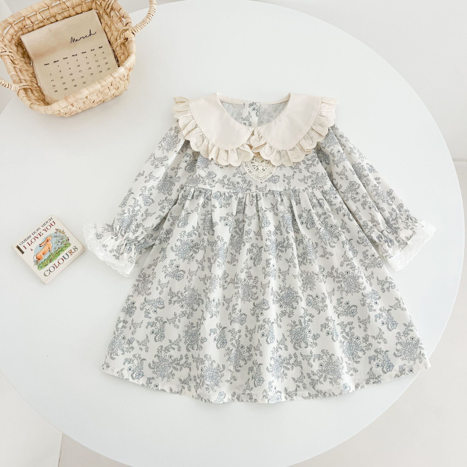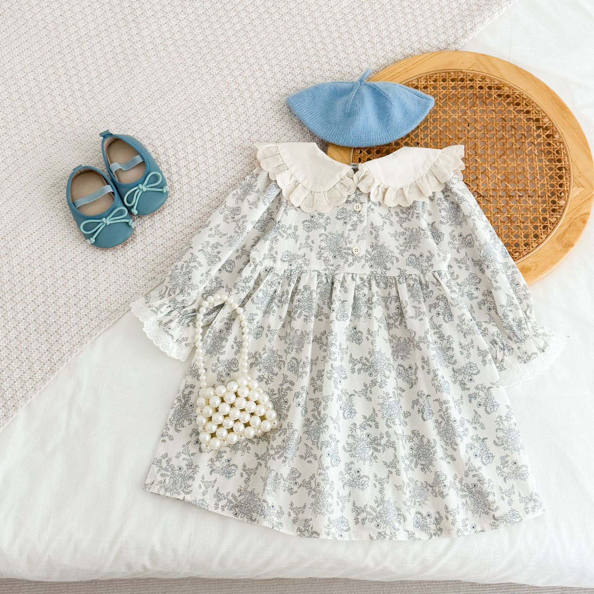 소녀 모리 플로랄 원피스 봄과 가을 새로운 어린이 서양식 레이스 인형 칼라 베이비 코튼 대외 무역을위한 긴 원피스스토어 가기