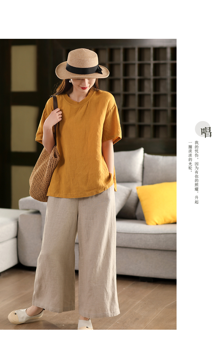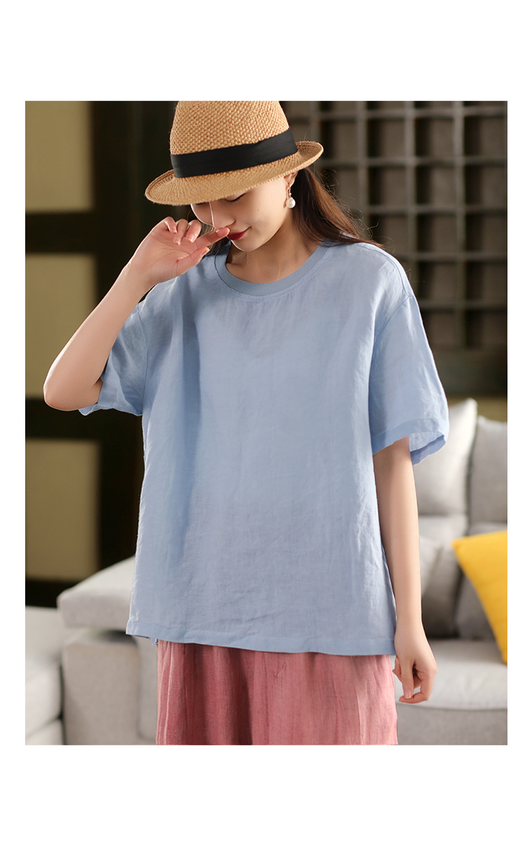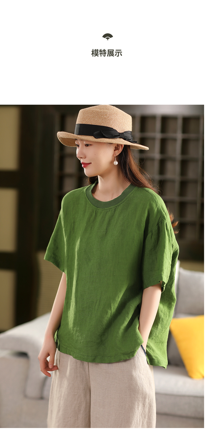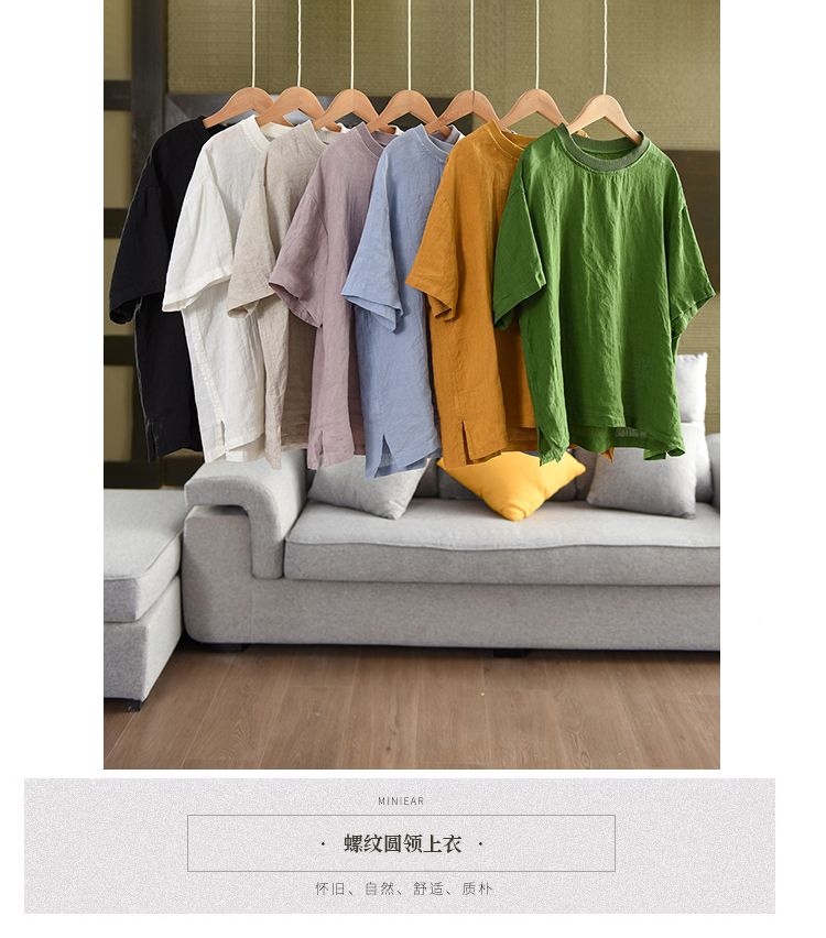2025 년 여름 뉴 리넨 탑 여성 스티칭 스레드 라운드 넥 반팔 셔츠 캐주얼 풀오버 티셔츠스토어 가기