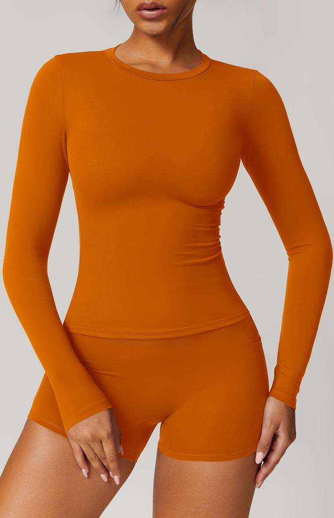 티셔츠 여성용 퀵 드라이 요가 피트니스 착용 야외 스포츠 라운드 넥 타이트 슬리밍 긴팔 슬림 핏 포켓 반바지 세트스토어 가기