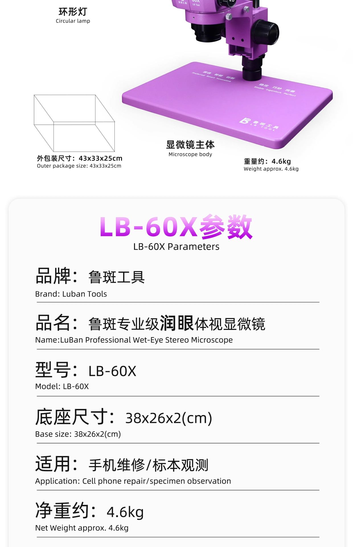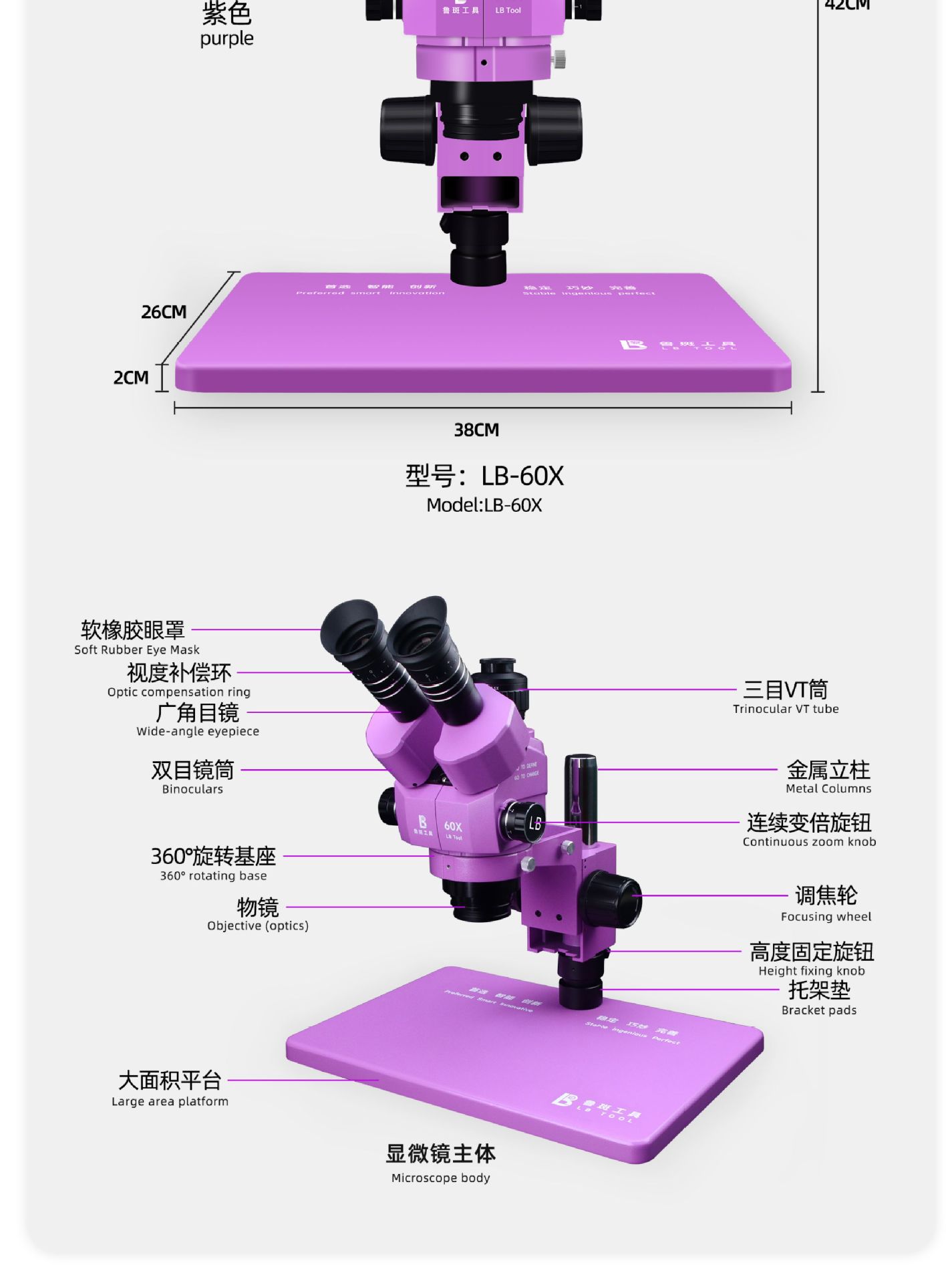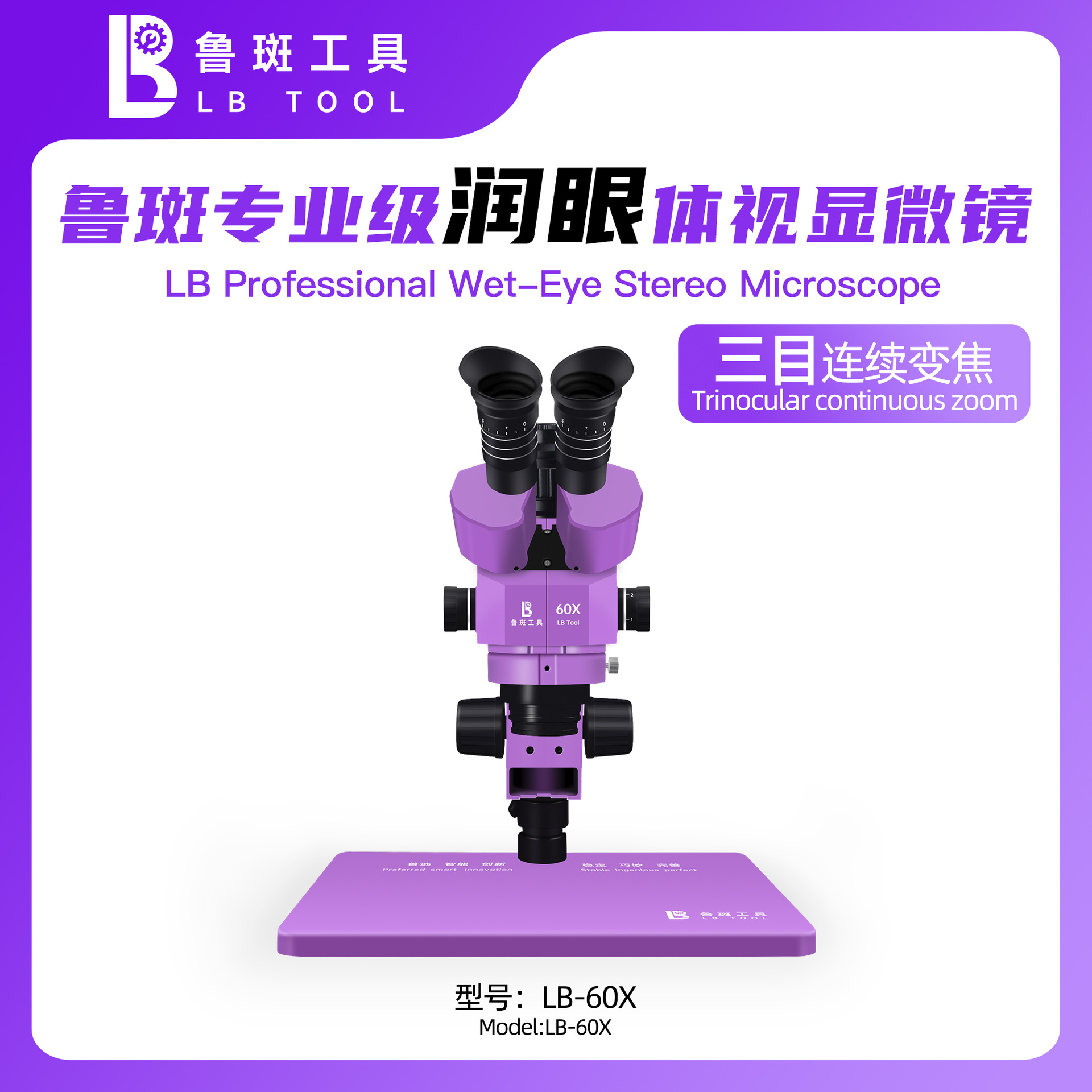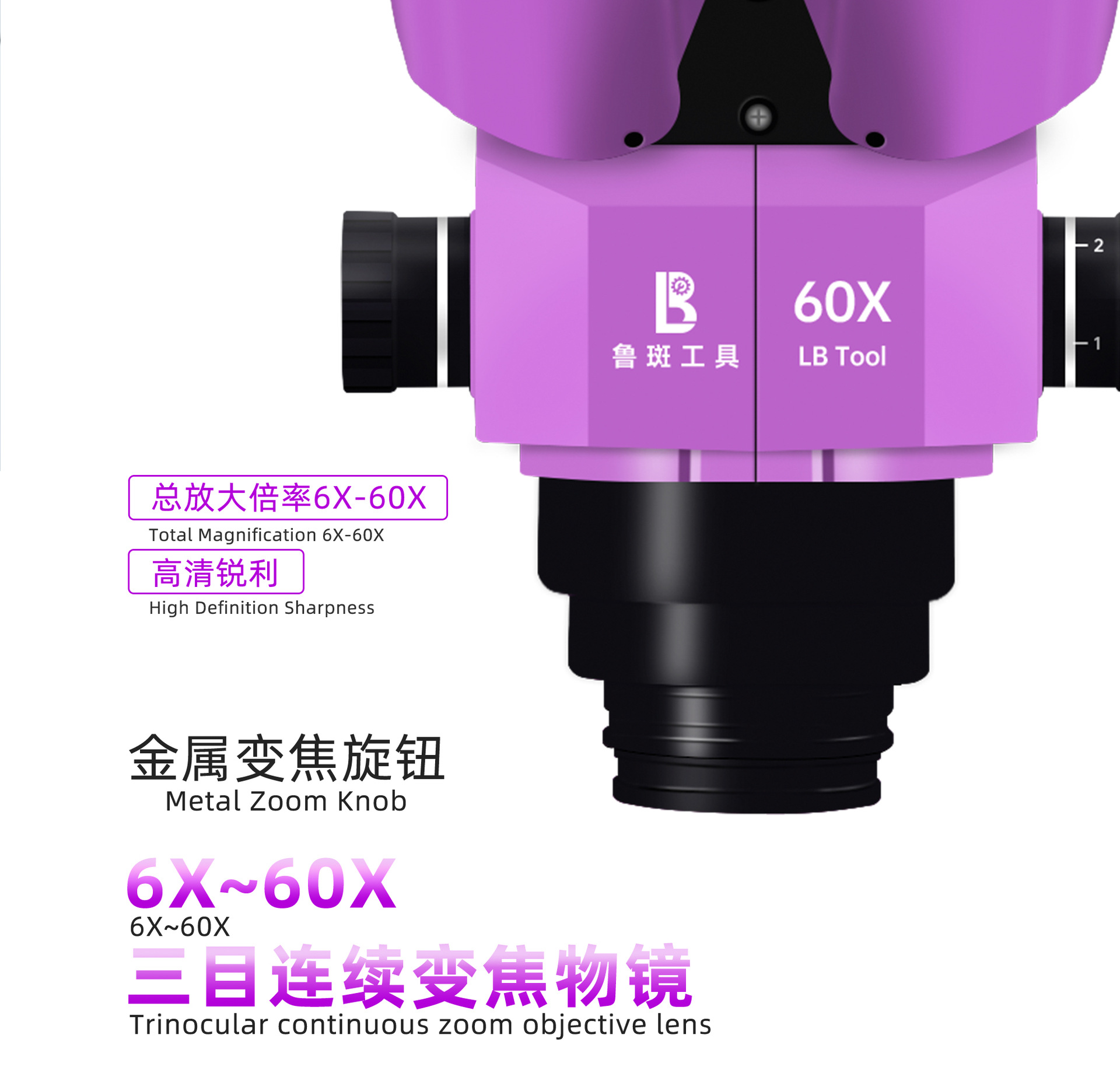• 루반 LB-60X 삼안현미경 싱글 헤드 [보라색]
