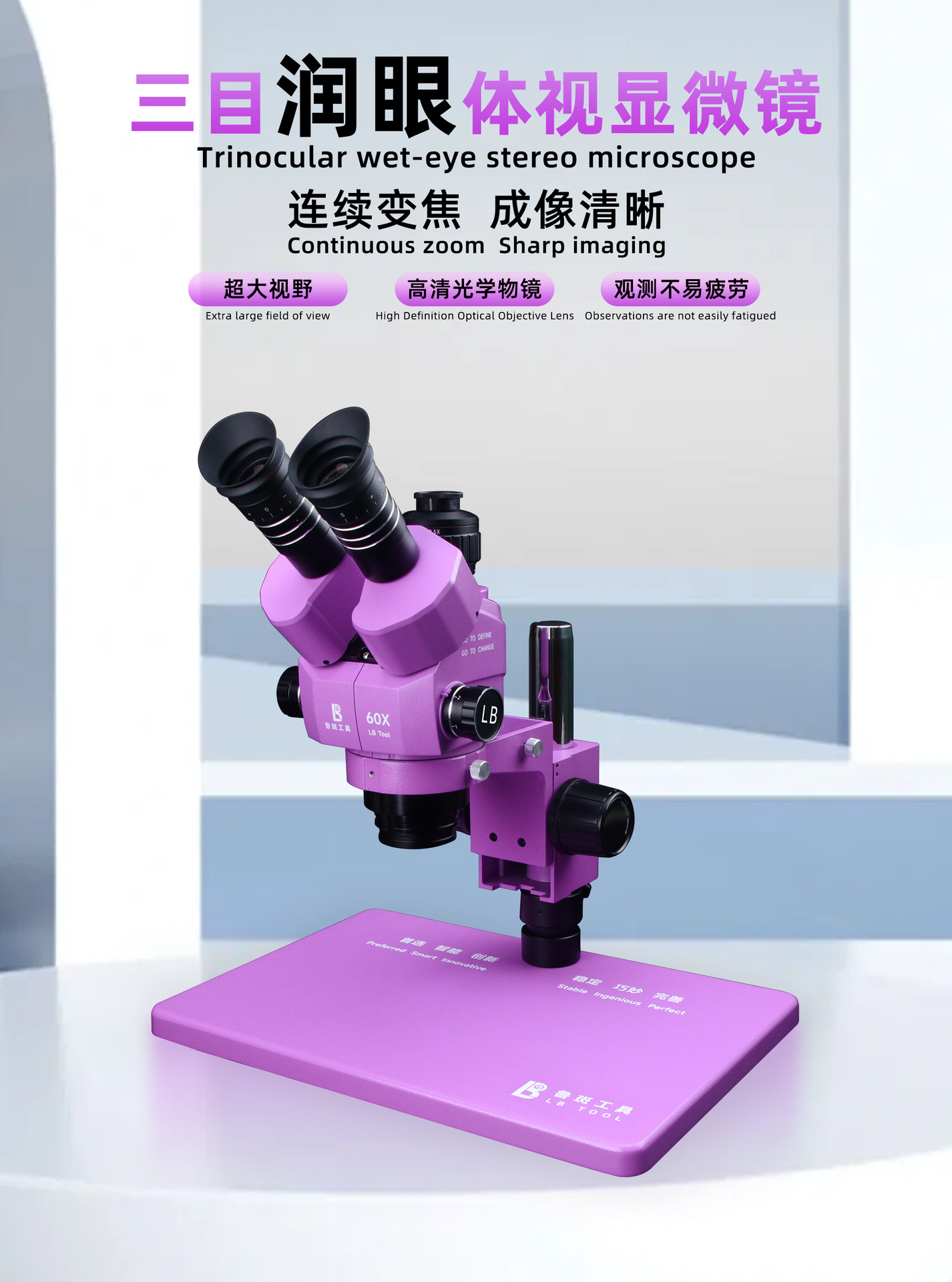 도구 LB-60X 삼안 현미경 4K HD 카메라 자동 초점 60배 전자 산업 등급 라이브 방송스토어 가기