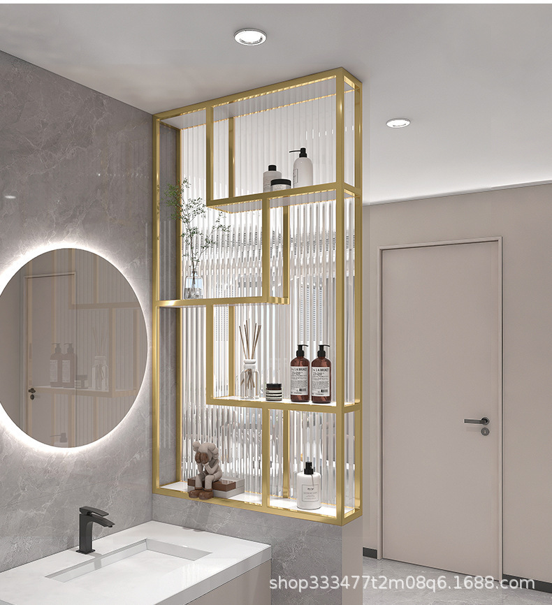 현대 욕실 반 벽 스크린 랙 거실 침실 사무실 간단한 유리 스테인레스 스틸 철 파티션