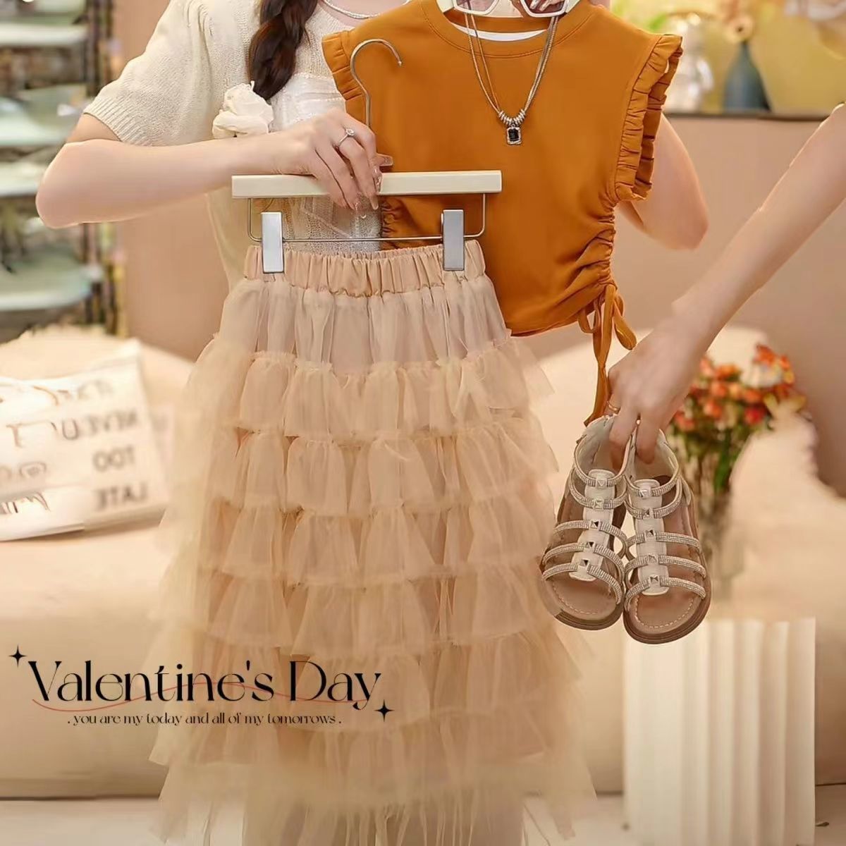 여자 여름 세트 서양식 폭발 2025 새로운 소녀 단색 기질 한국 패션 공주 스커트 투피스 세트