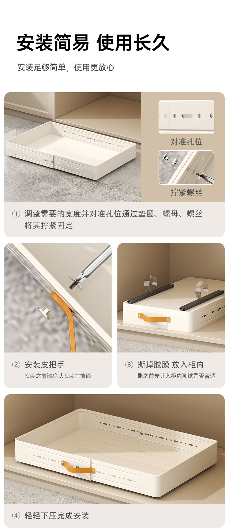 • [전면 및 후면 텔레스코픽 모델] 폭 35, 깊이 41-60, 풀아웃 박스 유백색