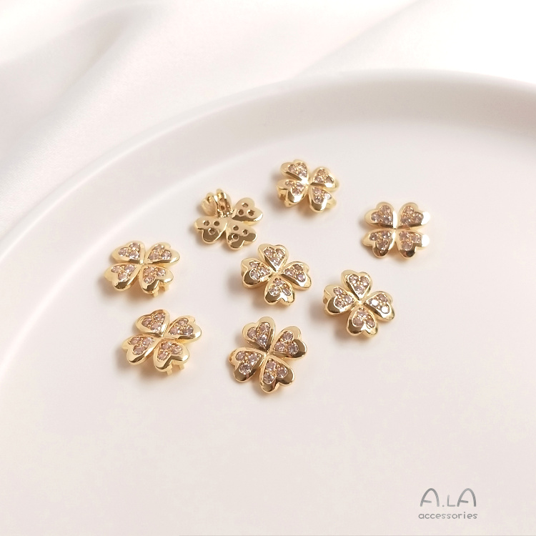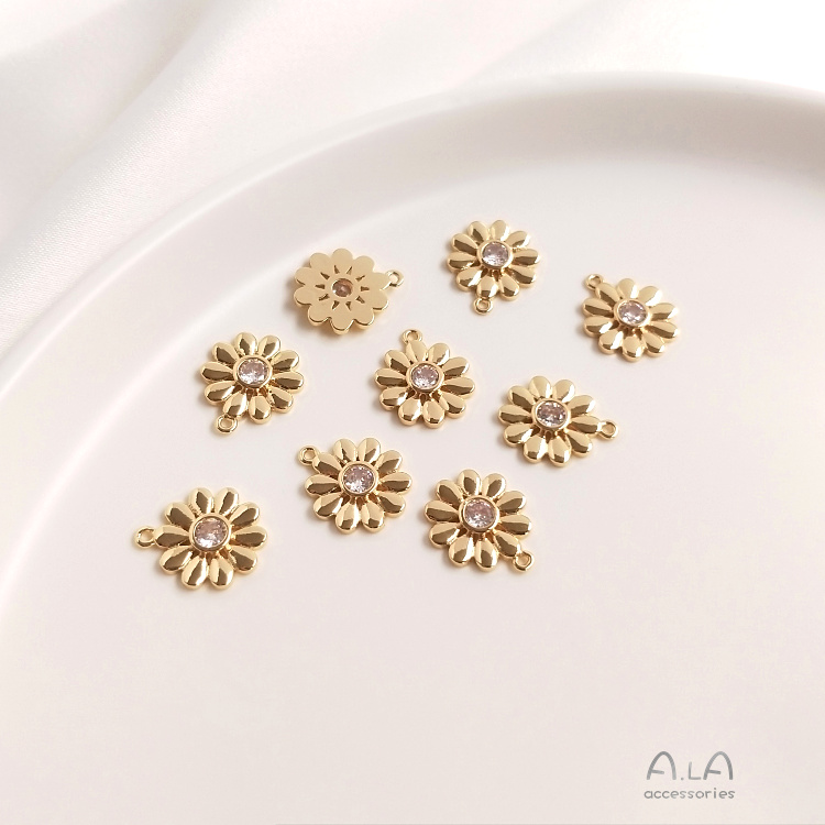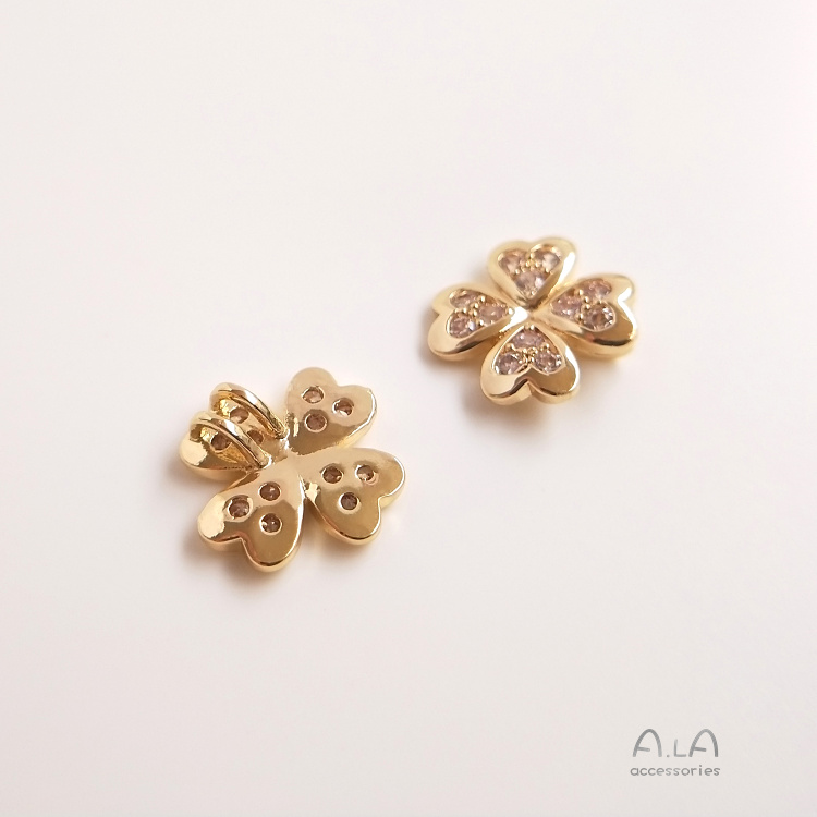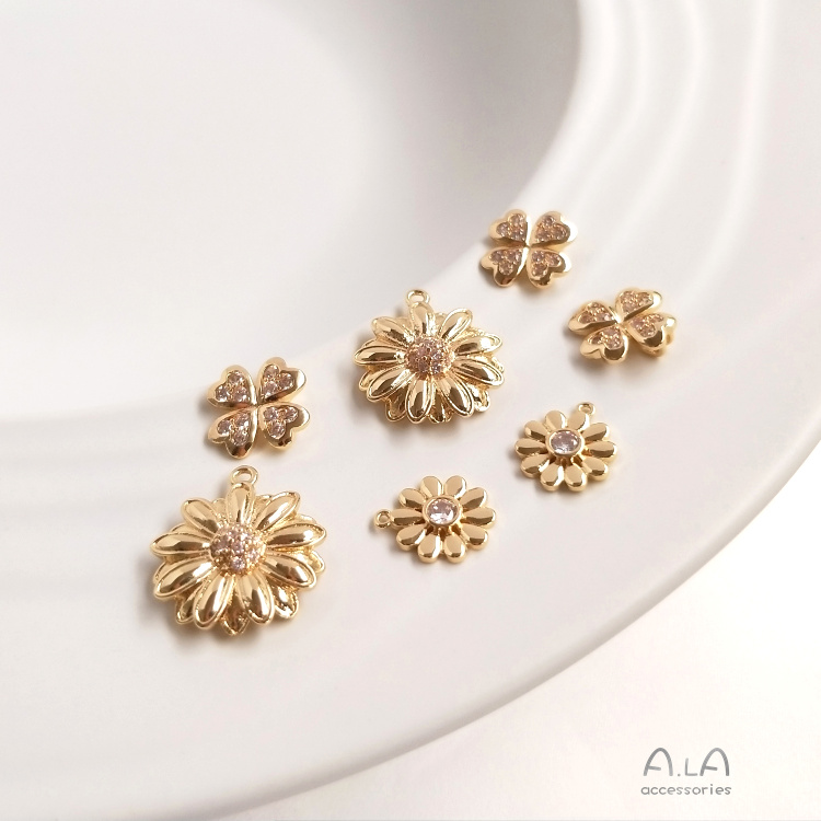 14K 금으로 채워진 지르콘 색상 보존 펜던트 데이지 꽃 네잎 클로버 꽃 펜던트 diy 팔찌 쇄골 목걸이 귀걸이 액세서리