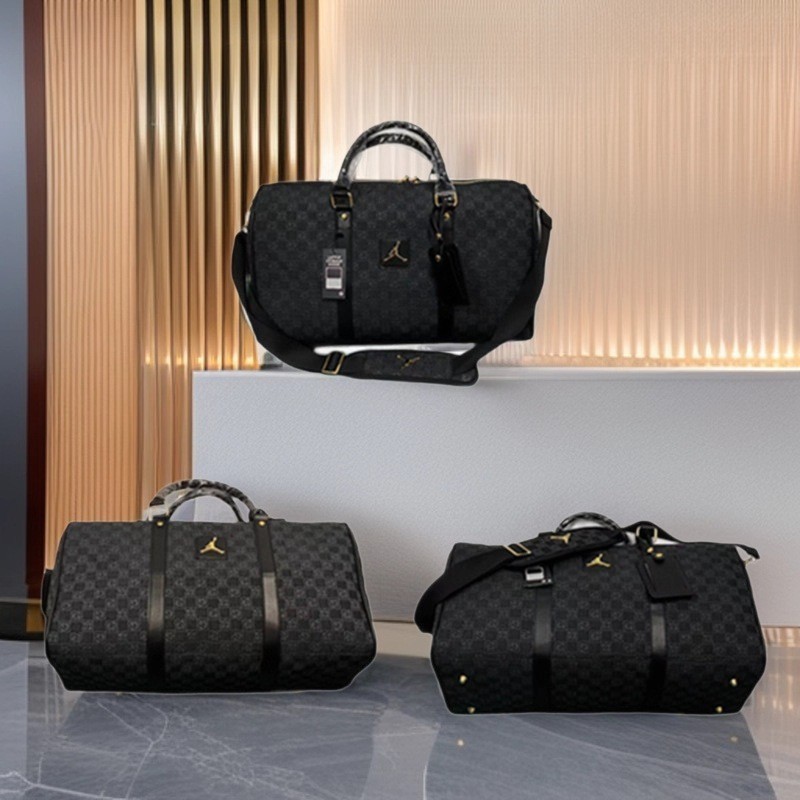 AJ 플라이맨 로고 블랙 골드 체크무늬 커플 여행 가방 농구 가방 숄더백 겸용 남녀 헬스 가방