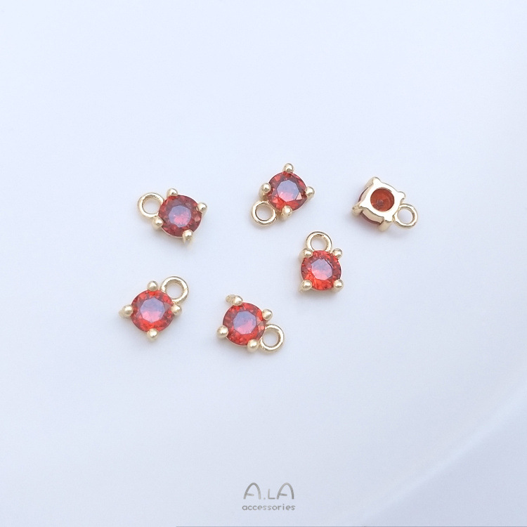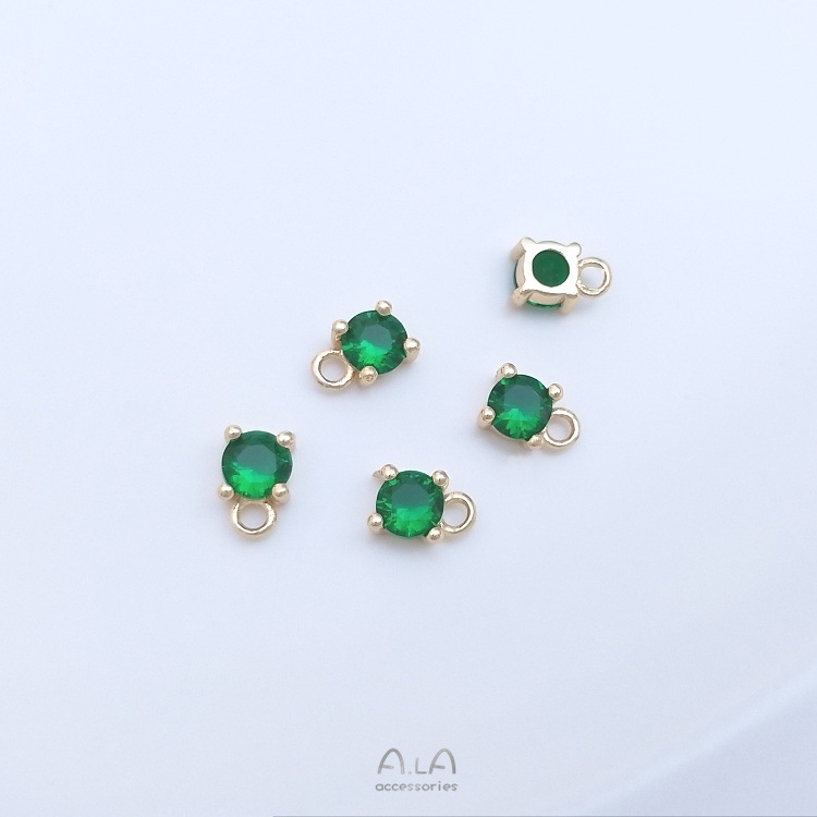 변색 방지 14K 금도금 네발톱 세팅 원형 컬러 지르콘 펜던트 DIY 수제 팔찌 귀걸이 장식 소품스토어 가기