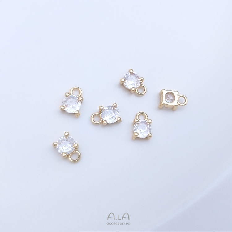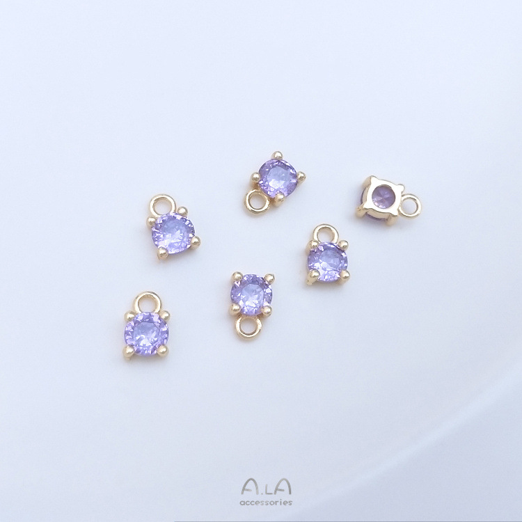 변색 방지 14K 금도금 네발톱 세팅 원형 컬러 지르콘 펜던트 DIY 수제 팔찌 귀걸이 장식 소품
