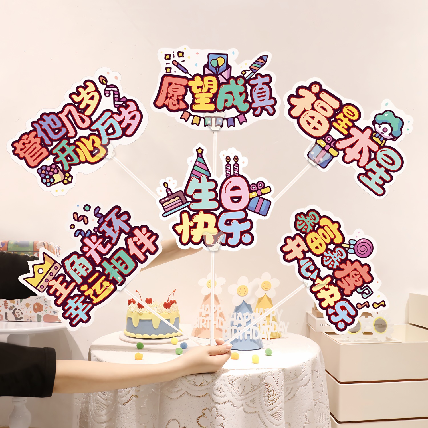 생일 장식 장면 레이아웃 손 카드 판지 테이블 카드 사진 소품 어린이 아기 생일 파티 원피스스토어 가기