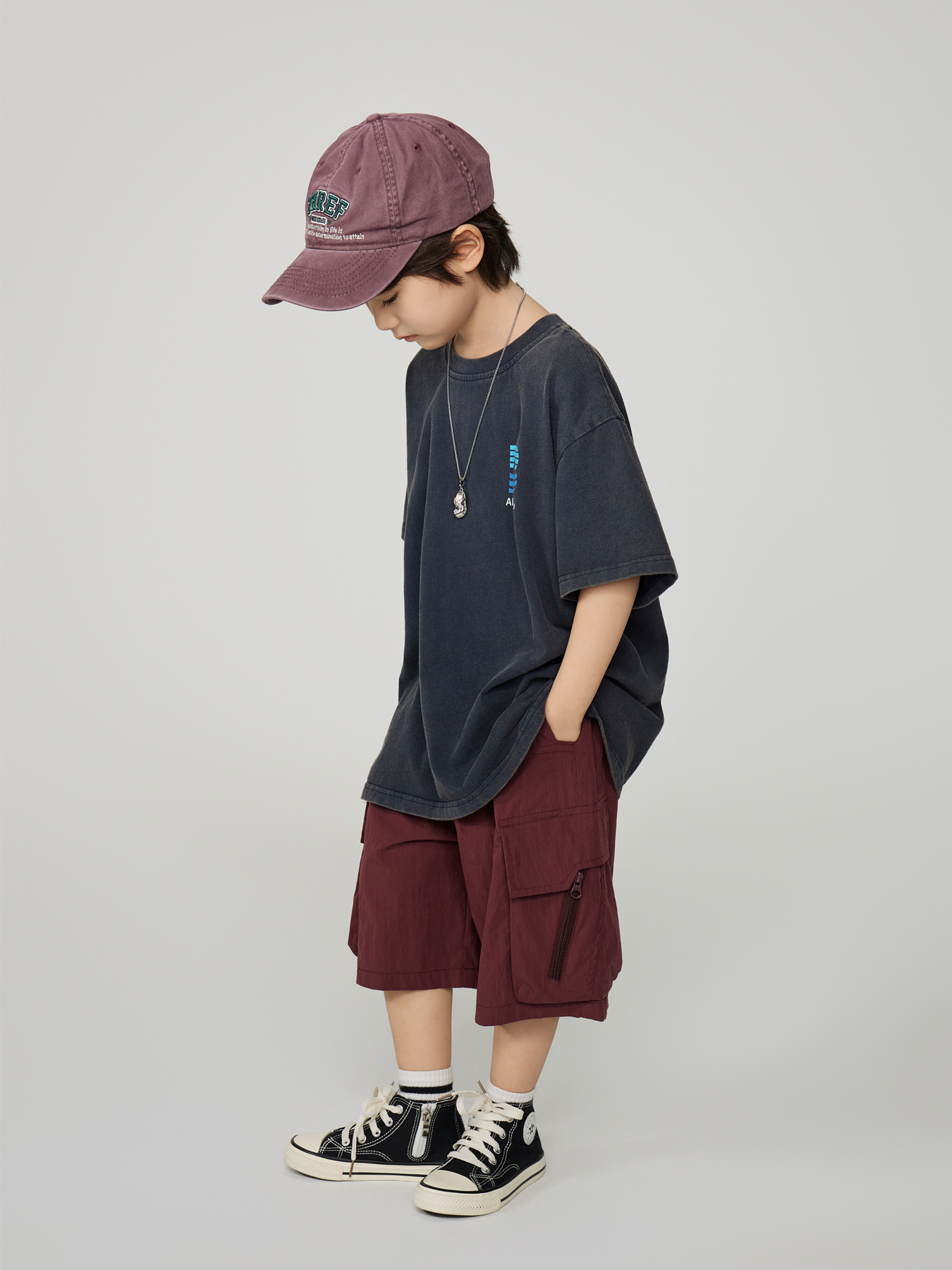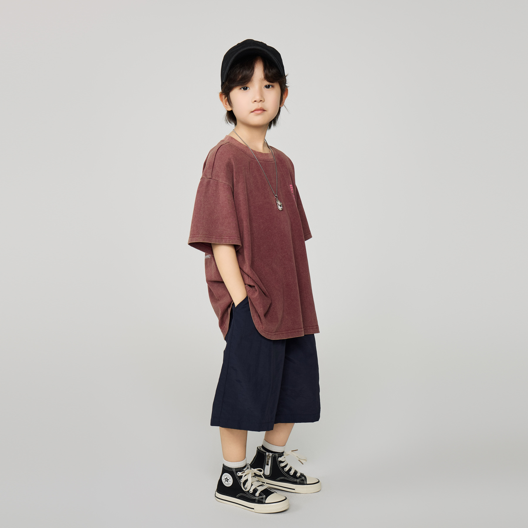 2025 년 여름 새로운 어린이 일본식 캐주얼 레터 인쇄 반팔 남성 중 큰 어린이 튀김 올드 빈티지 티셔츠