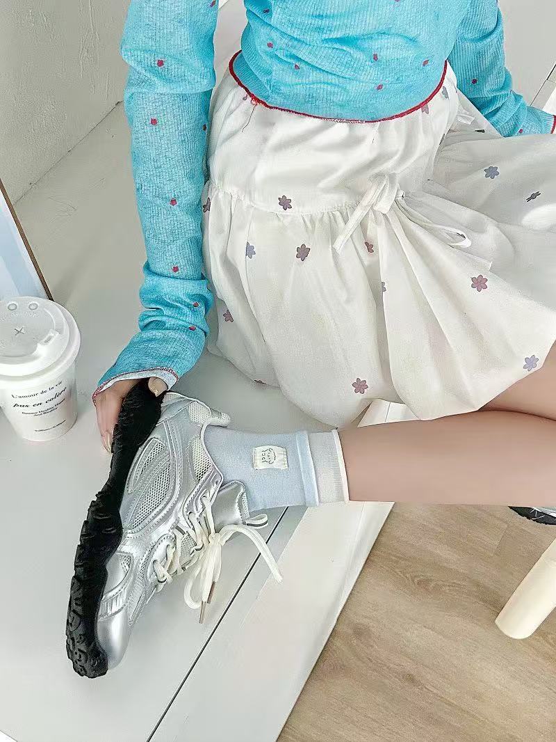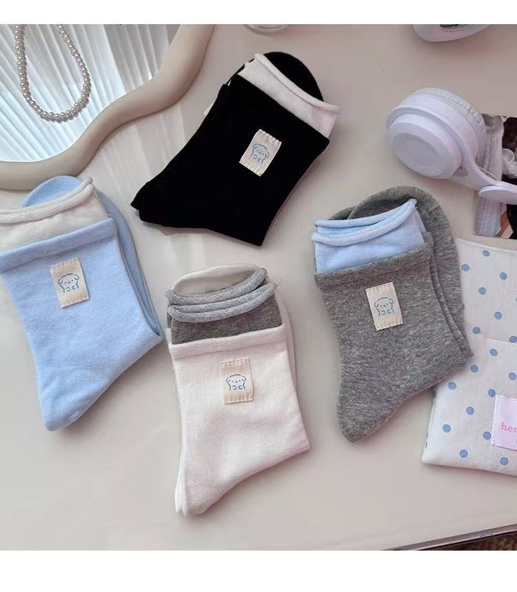 봄과 여름 새로운 스타일 양말 여성 더블 라쿠 블루 그레이 버튼 천 라벨 곰 귀여운 한국 스타일 인스타그램 스타일 유행 양말 코튼 미드 튜브 양말스토어 가기