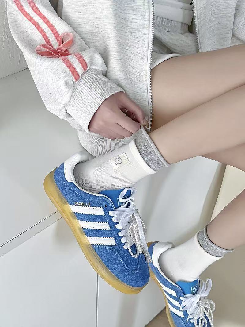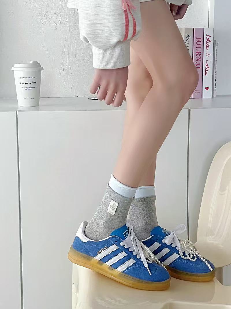 봄과 여름 새로운 스타일 양말 여성 더블 라쿠 블루 그레이 버튼 천 라벨 곰 귀여운 한국 스타일 인스타그램 스타일 유행 양말 코튼 미드 튜브 양말