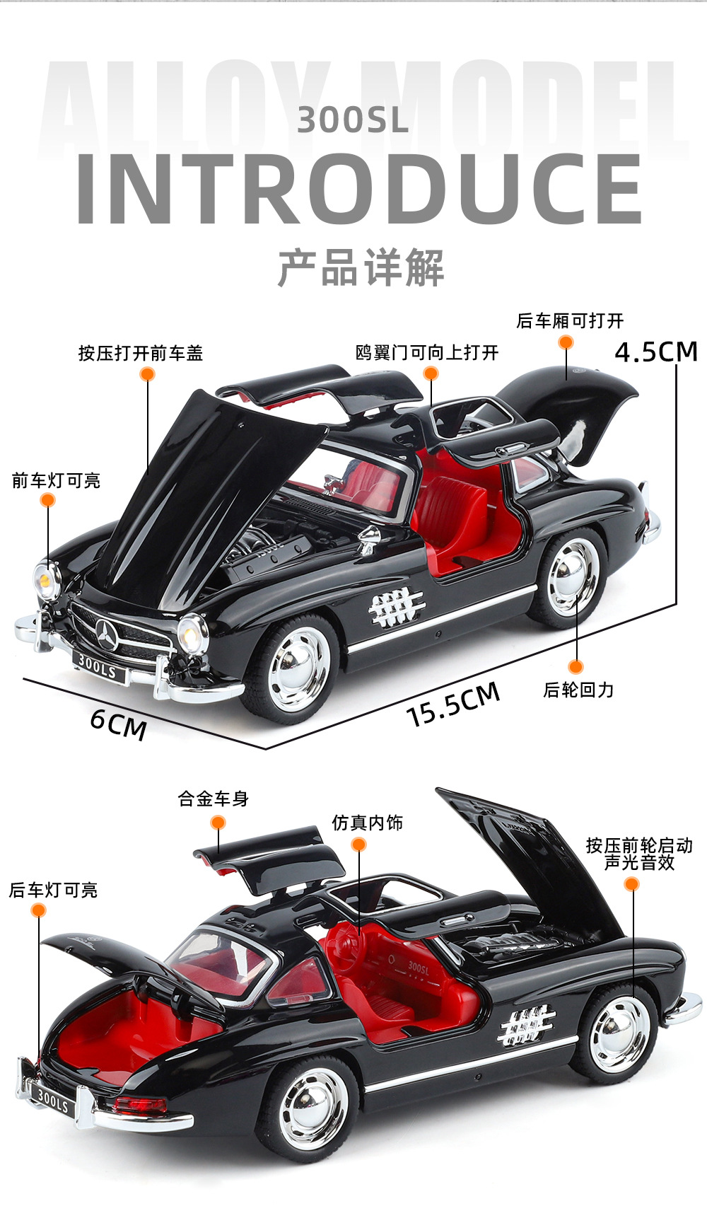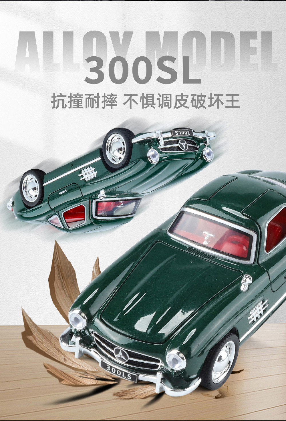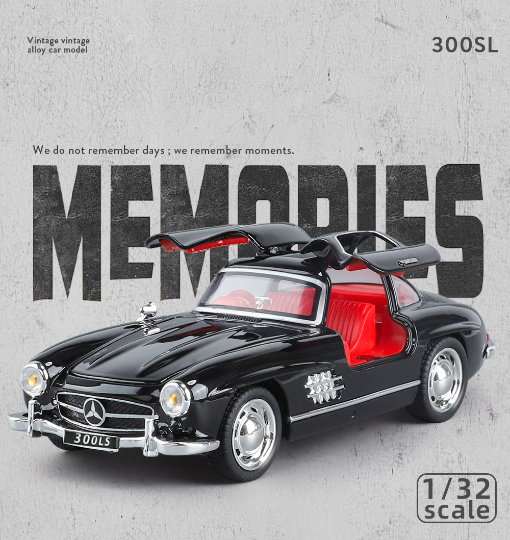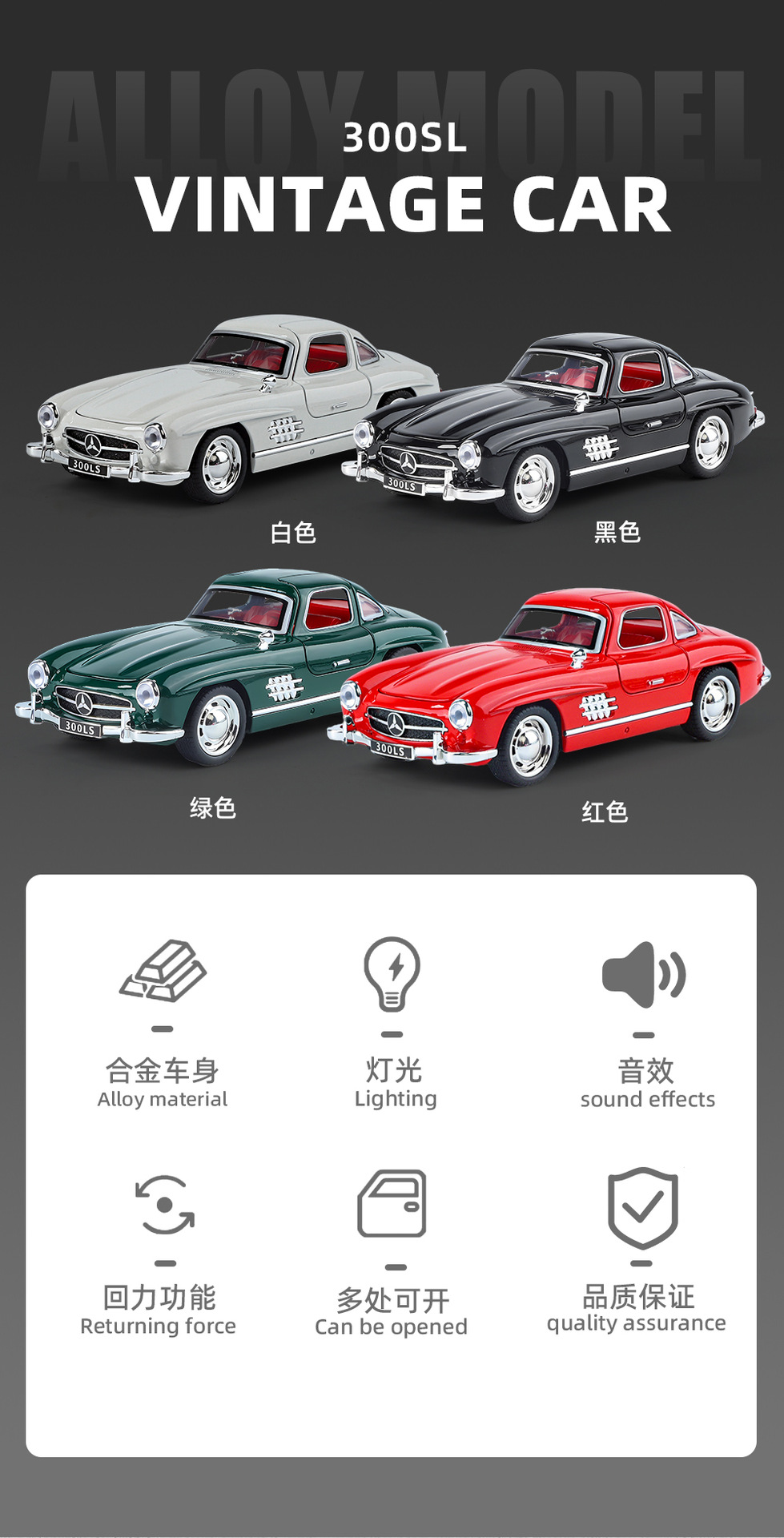 1:32 벤 * 300SL 빈티지 자동차 컨버터블 럭셔리카 로고 합금 사운드와 라이트 도어 오프닝 백 포스 어린이 장난감 자동차 모델