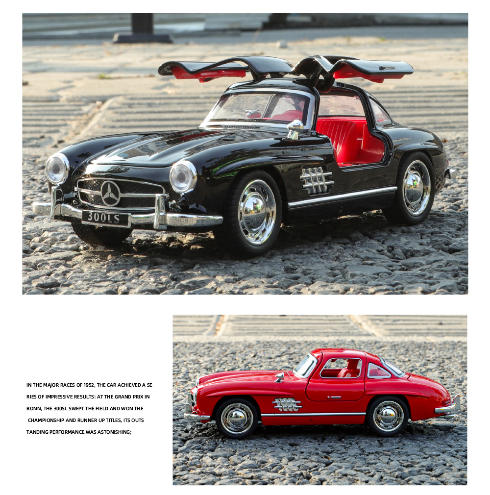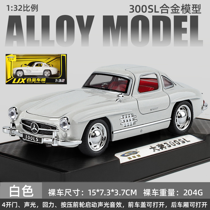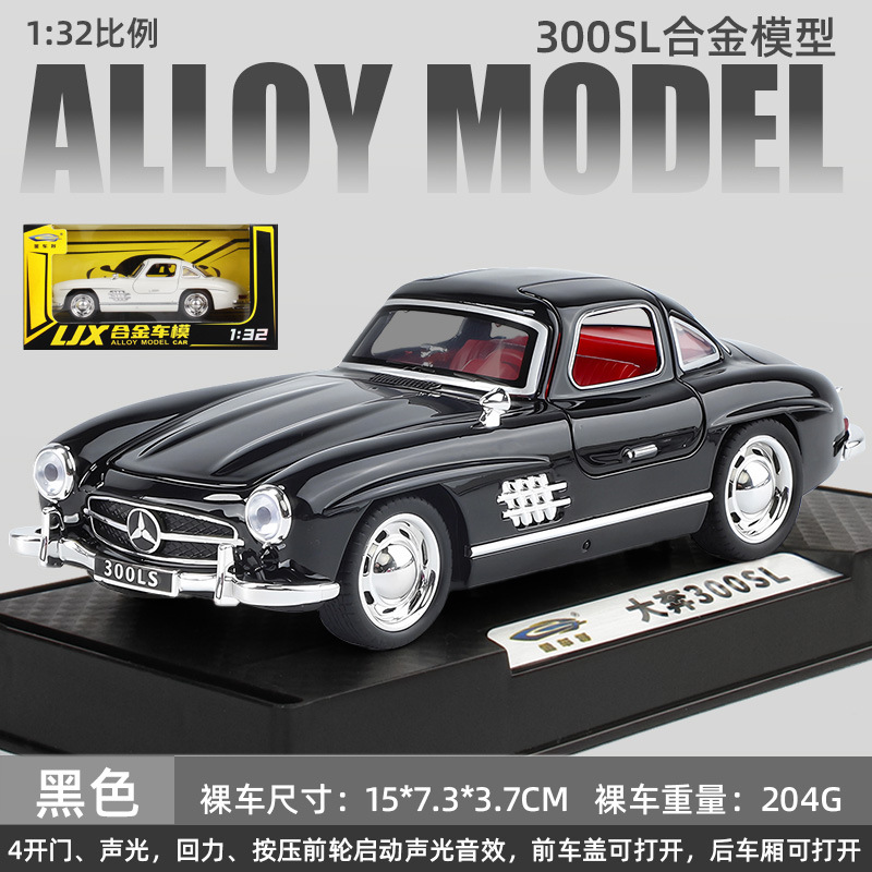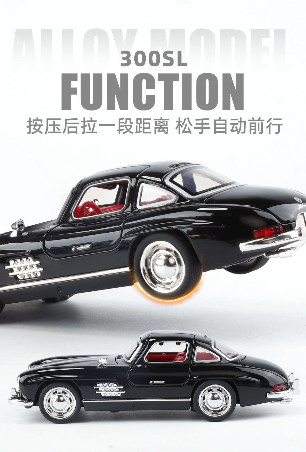 1:32 벤 * 300SL 빈티지 자동차 컨버터블 럭셔리카 로고 합금 사운드와 라이트 도어 오프닝 백 포스 어린이 장난감 자동차 모델