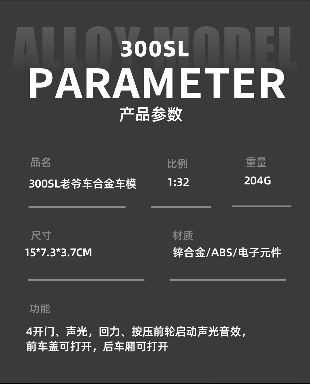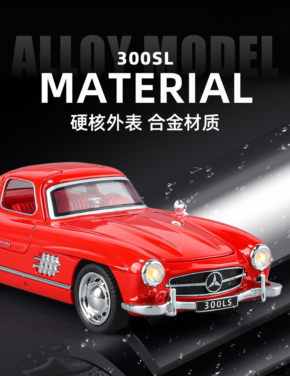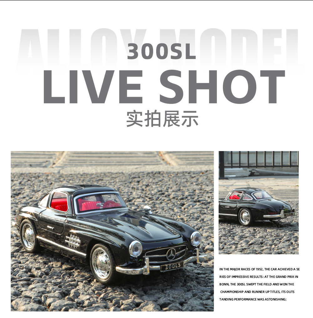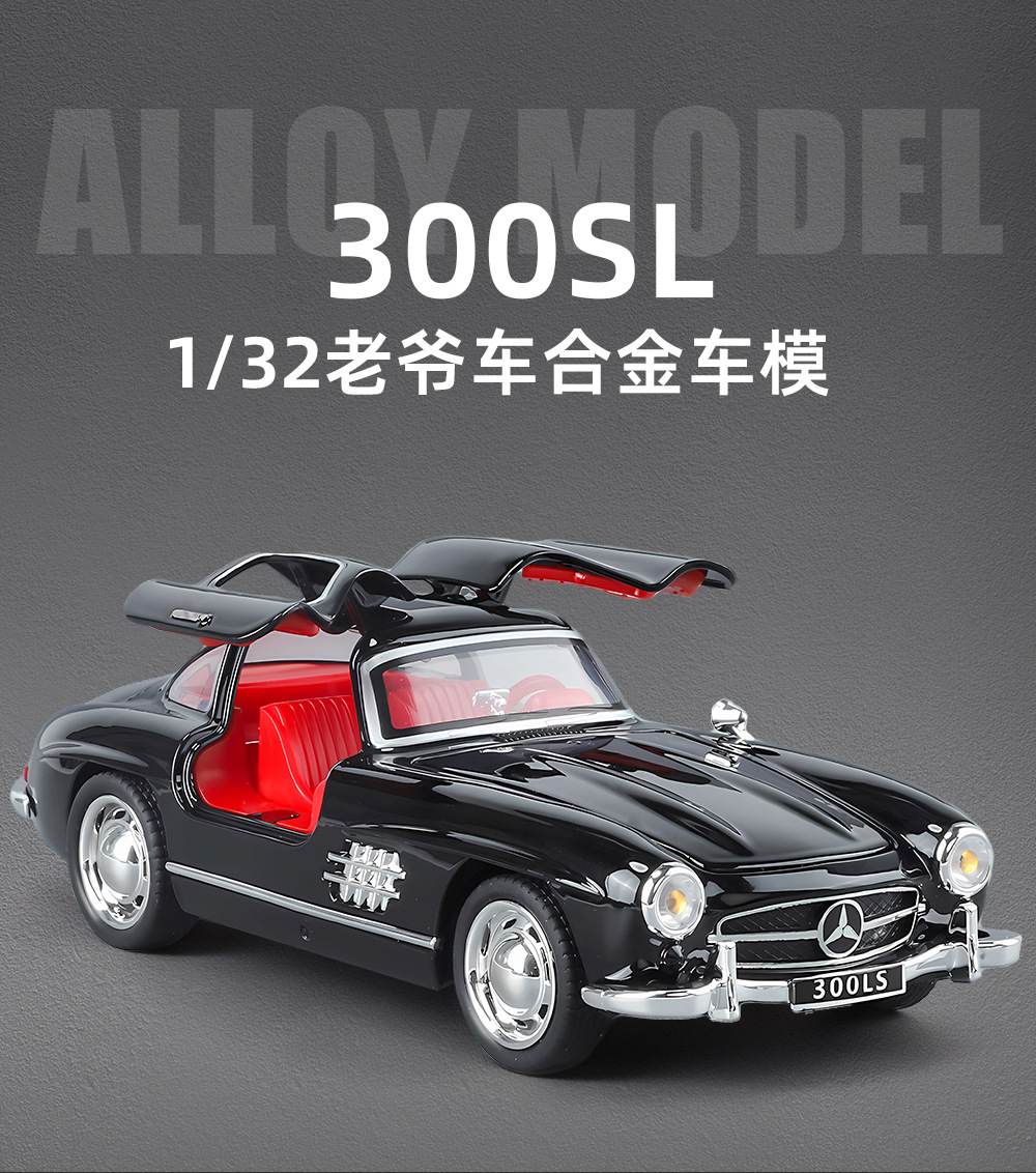 1:32 벤 * 300SL 빈티지 자동차 컨버터블 럭셔리카 로고 합금 사운드와 라이트 도어 오프닝 백 포스 어린이 장난감 자동차 모델