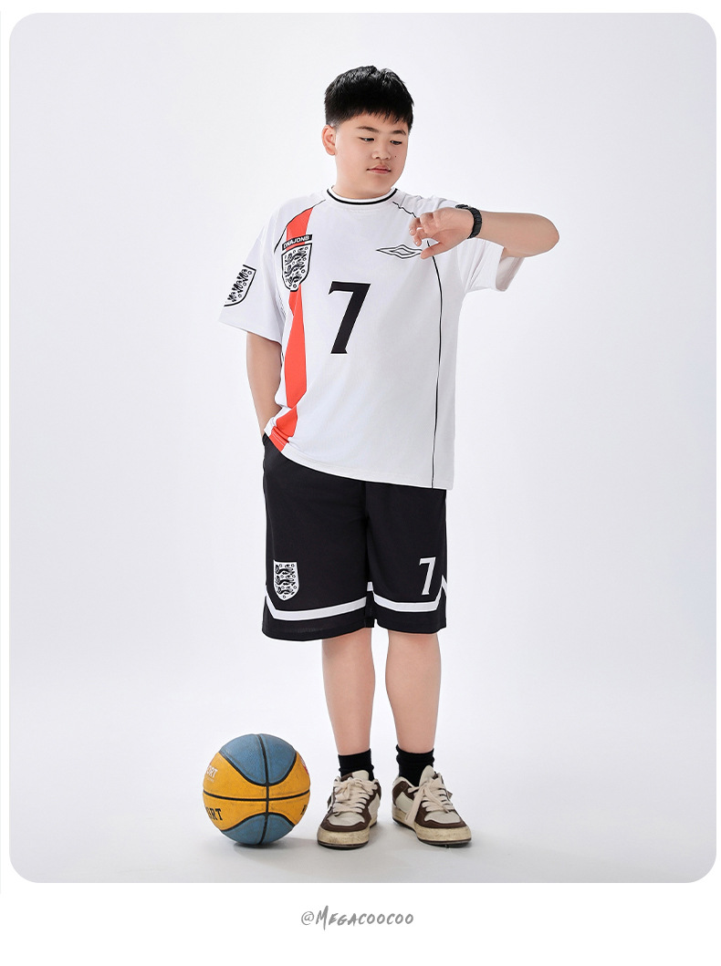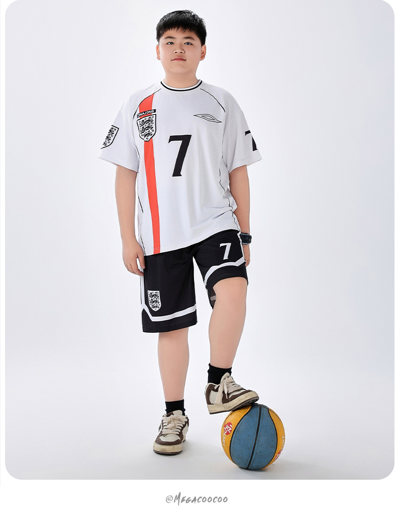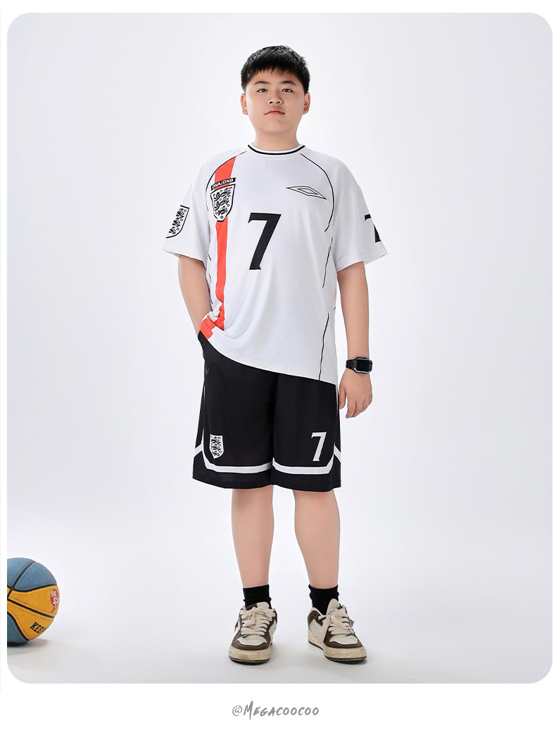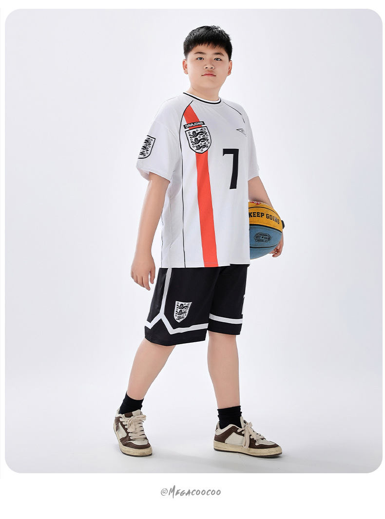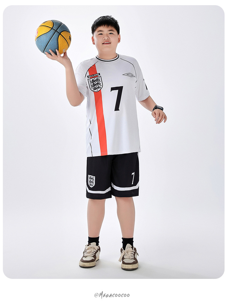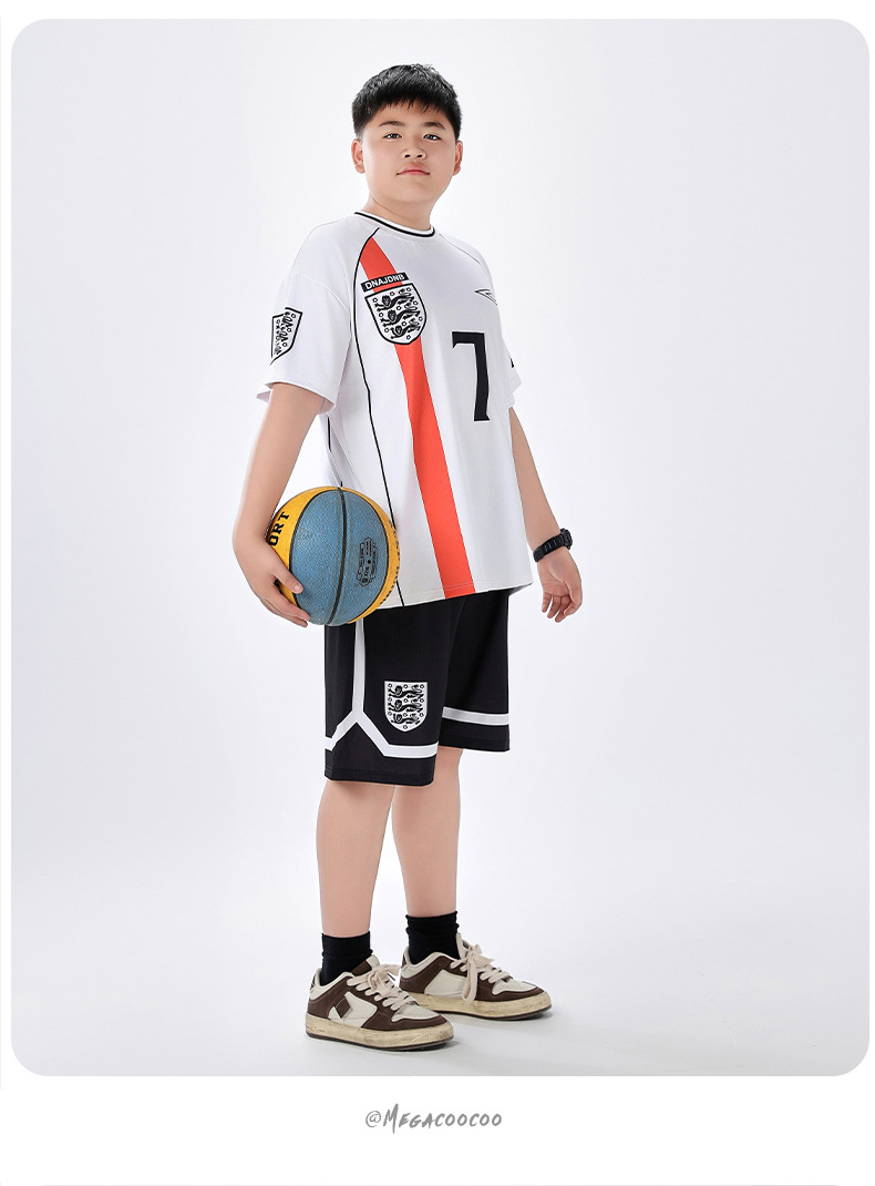 뚱뚱한 소년의 속건성 반팔 양복 플러스 뚱뚱한 중대형 어린이 여름 옷 플러스 청소년을 위한 뚱뚱한 스포츠 농구 유니폼