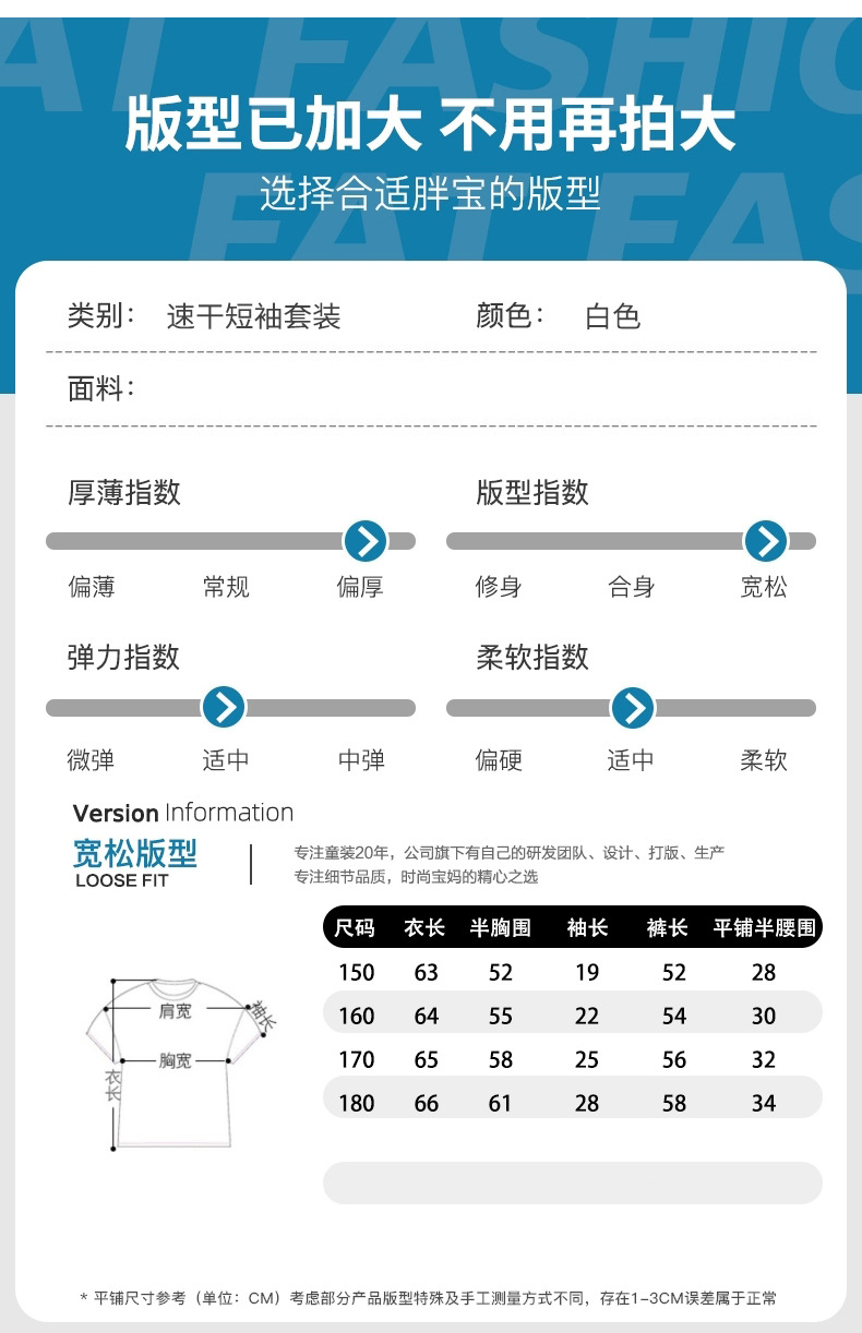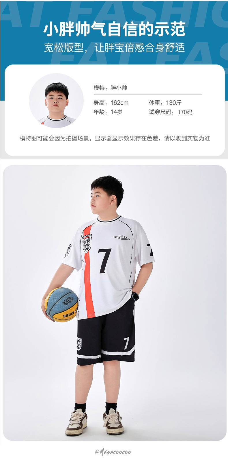 뚱뚱한 소년의 속건성 반팔 양복 플러스 뚱뚱한 중대형 어린이 여름 옷 플러스 청소년을 위한 뚱뚱한 스포츠 농구 유니폼스토어 가기