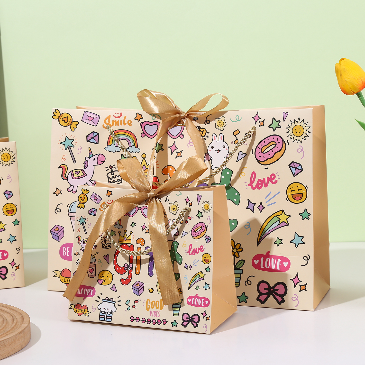 귀여운 선물 선물 가방 만화 낙서 핸드백 어린이 생일 선물 가방 크리 에이 티브 쇼핑 휴대용 종이 가방