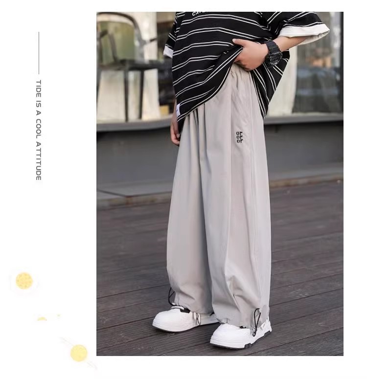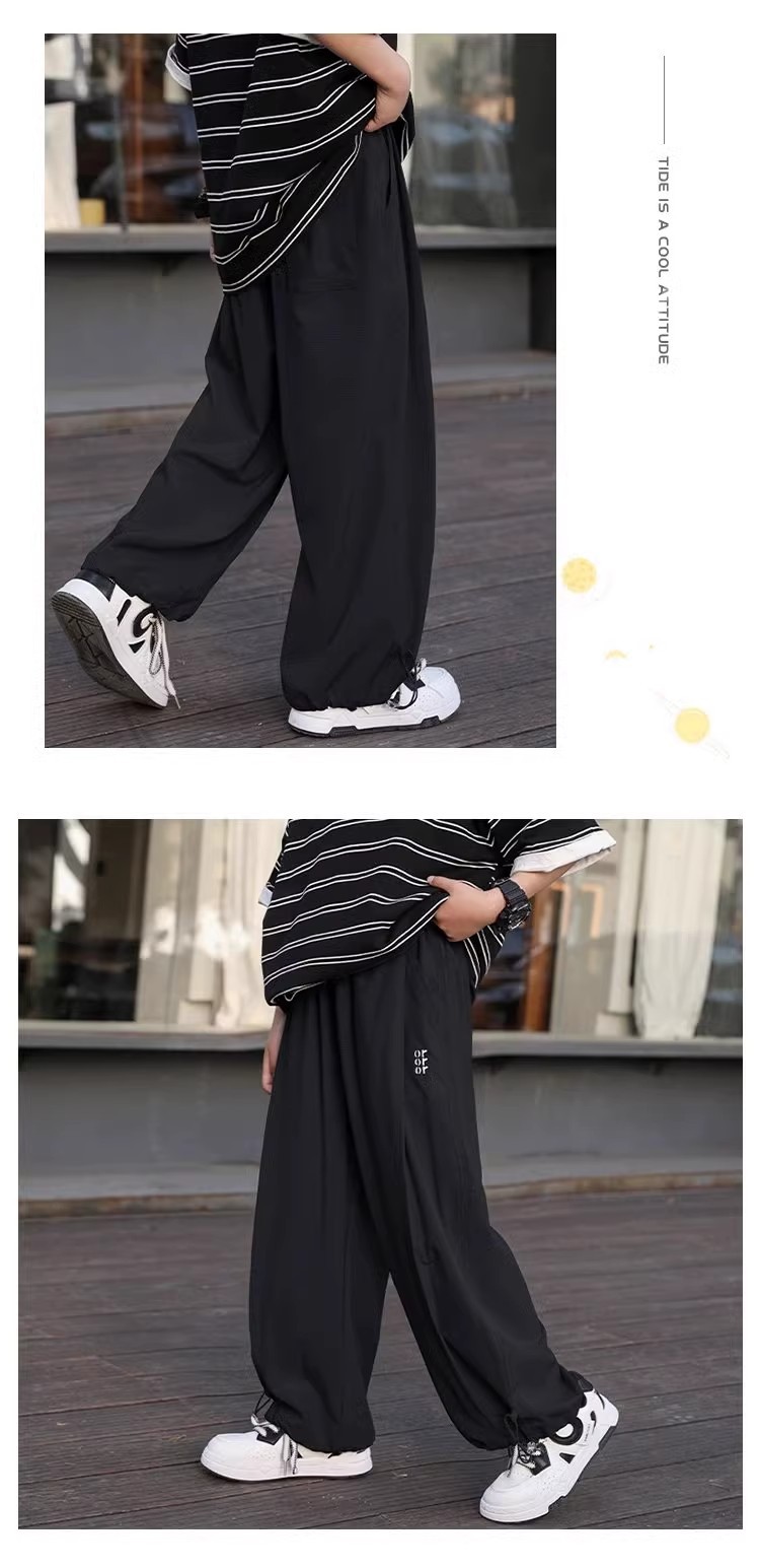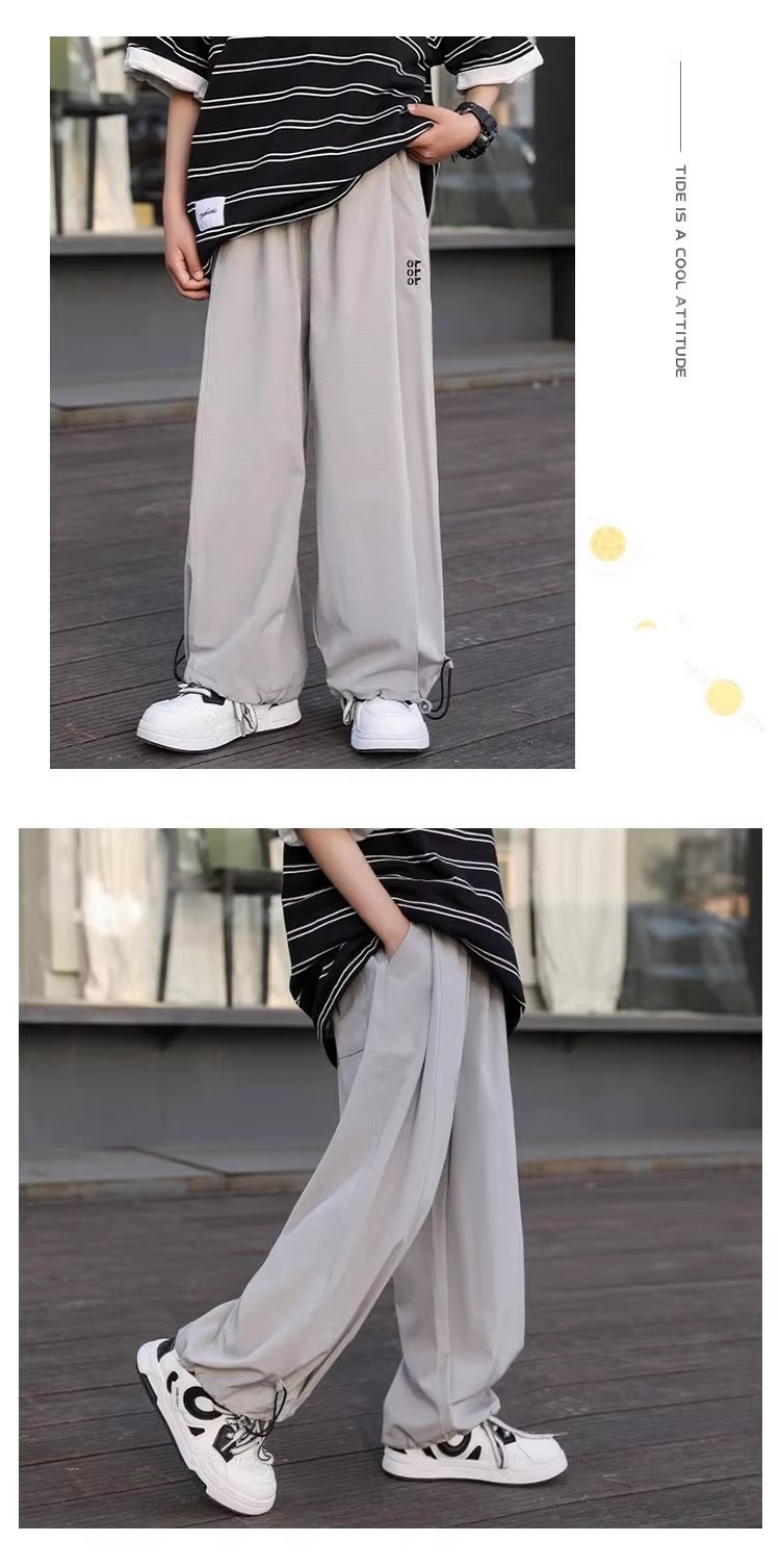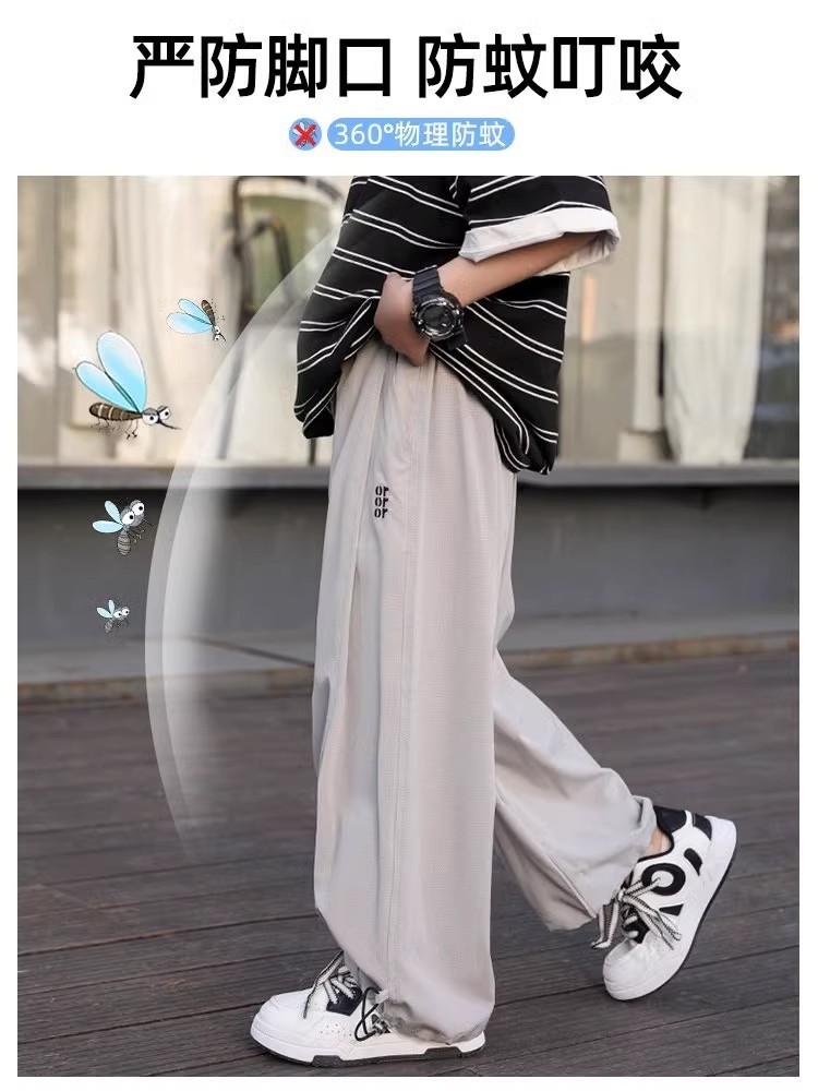 남자들의 여름 얇은 얼음 실크 넓은 다리 바지 2025 어린이 트렌디 한 느슨한 바지 중 큰 어린이 캐주얼 안티 모기 트렌디 바지스토어 가기