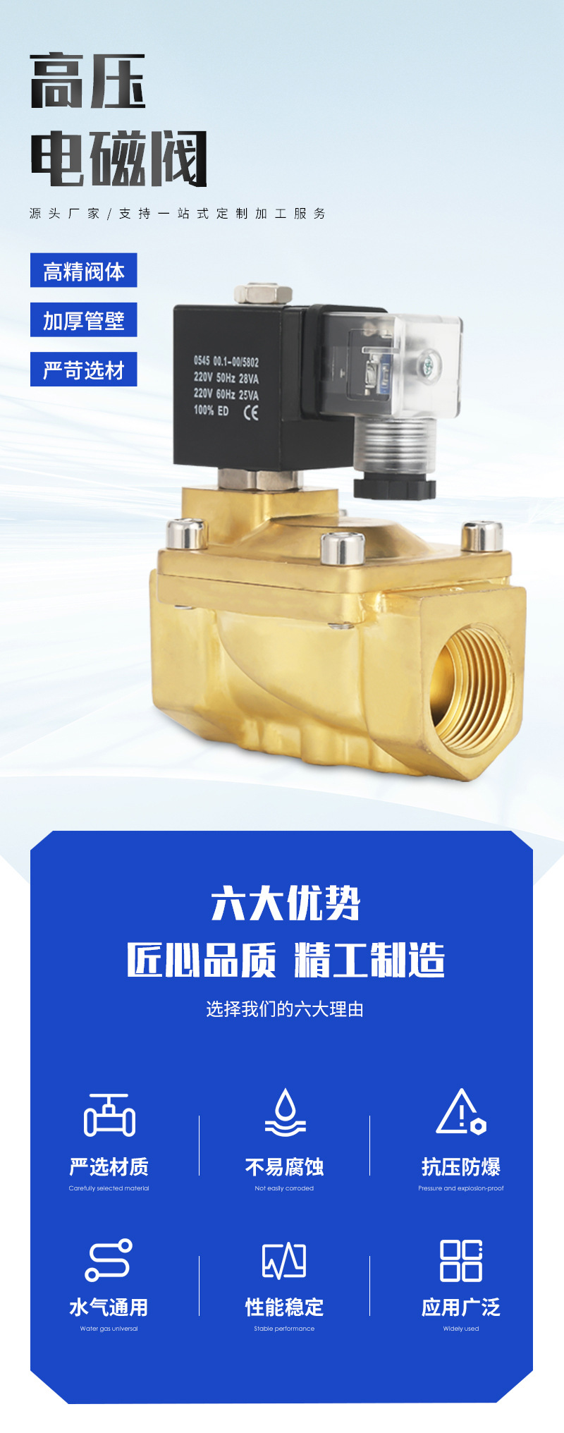 Baodaling 파일럿 작동식 고압 BDL-SLP-25 황동 나사형 평상시 닫힘 유형 액체 및 가스용 1.0inch 솔레노이드 밸브