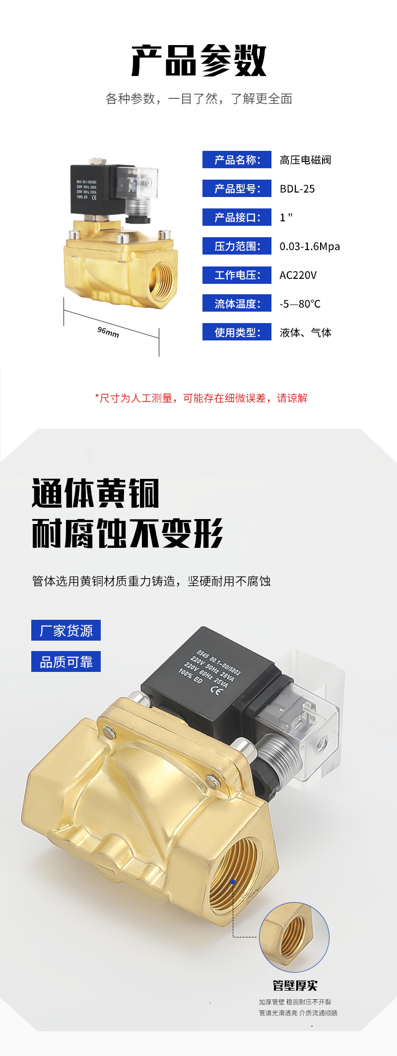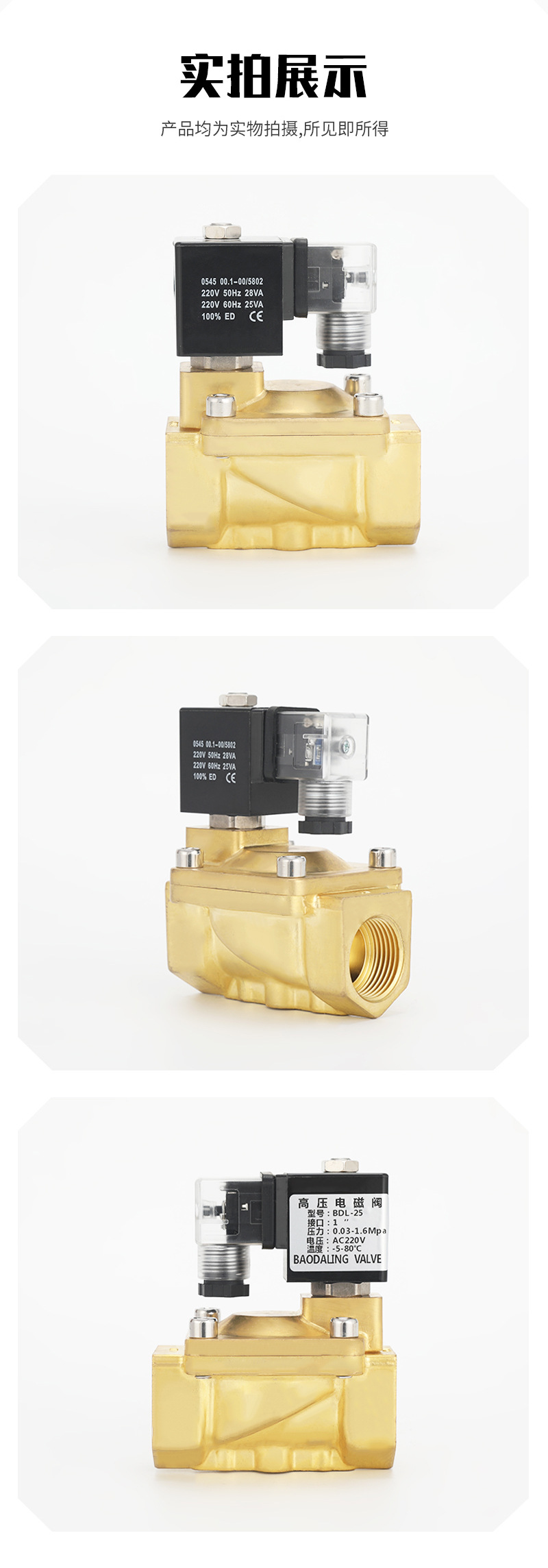 Baodaling 파일럿 작동식 고압 BDL-SLP-25 황동 나사형 평상시 닫힘 유형 액체 및 가스용 1.0inch 솔레노이드 밸브스토어 가기