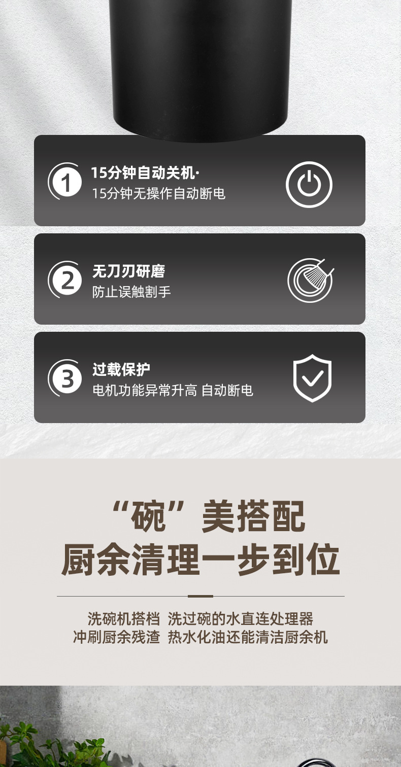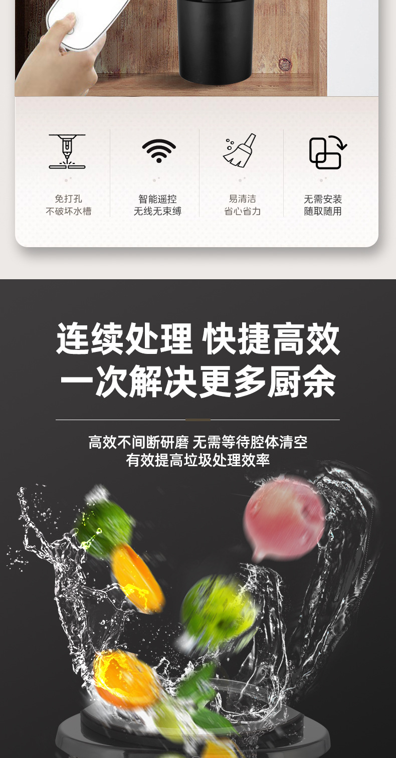 7단계 이중 분쇄 주방 쓰레기 처리기 가정용 음식물 분쇄기 무선 스위치 무선 리모컨