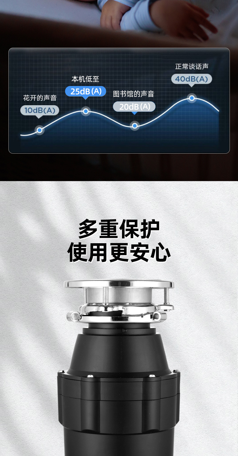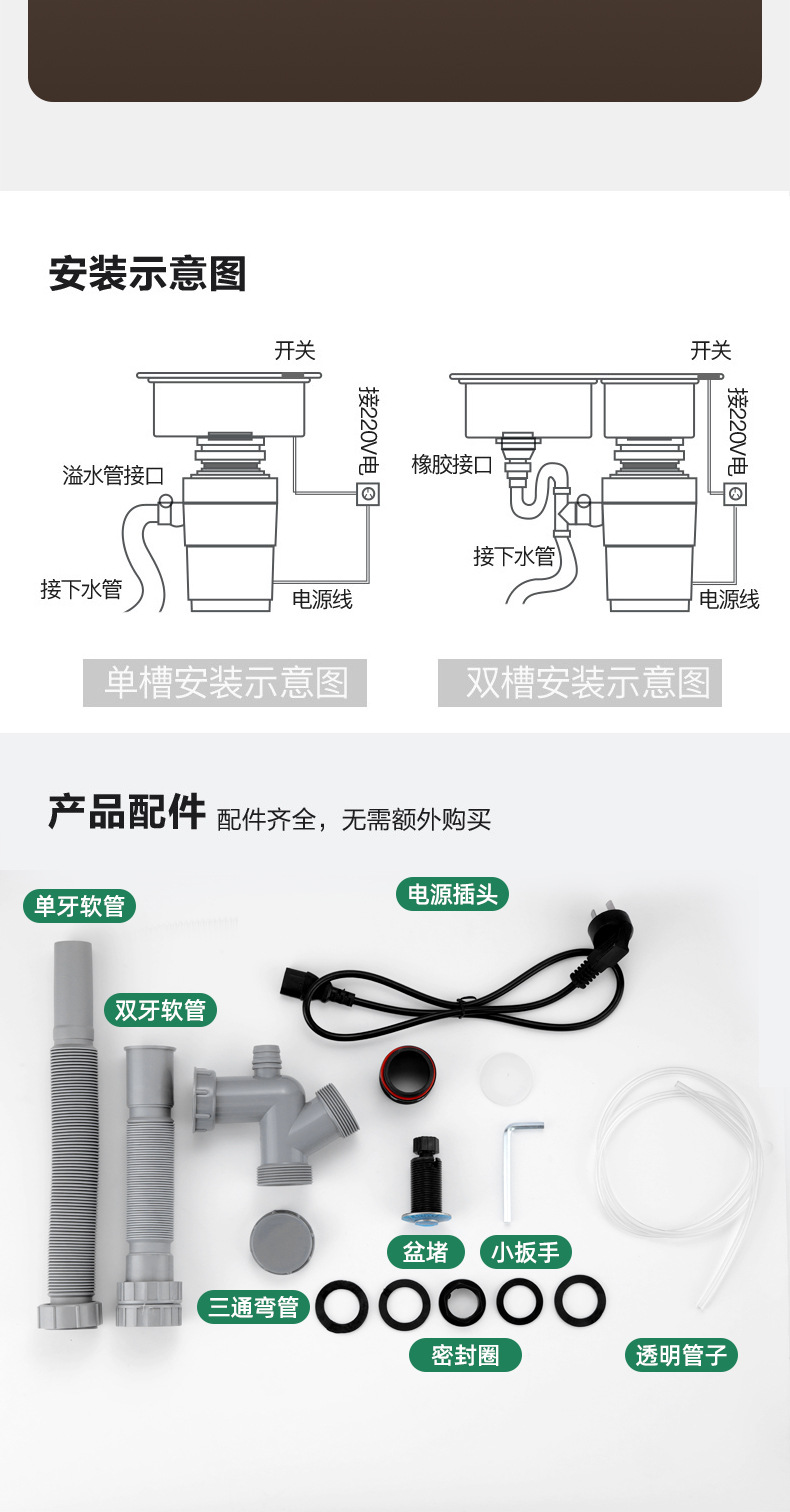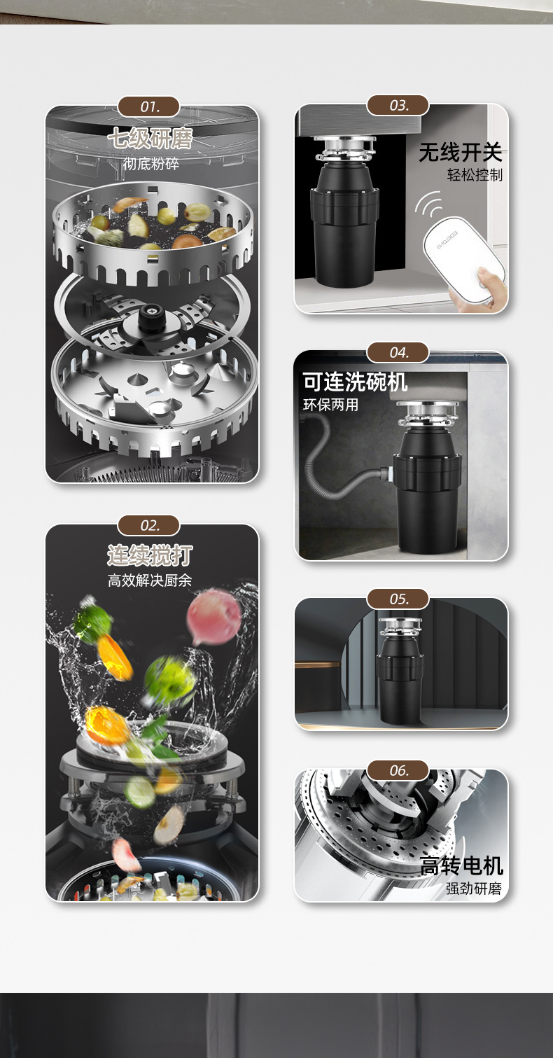7단계 이중 분쇄 주방 쓰레기 처리기 가정용 음식물 분쇄기 무선 스위치 무선 리모컨스토어 가기