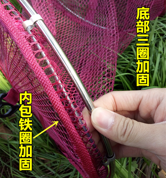 검은 구덩이 물고기 보호 그물 포켓 손잡이가있는 스테인레스 스틸 링 두꺼운 접착제 코팅 어부 그물 낚시 그물 포켓 국경 간 재고스토어 가기
