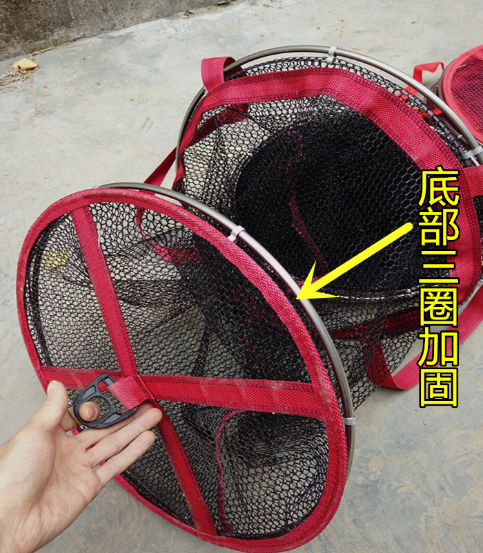 검은 구덩이 물고기 보호 그물 포켓 손잡이가있는 스테인레스 스틸 링 두꺼운 접착제 코팅 어부 그물 낚시 그물 포켓 국경 간 재고