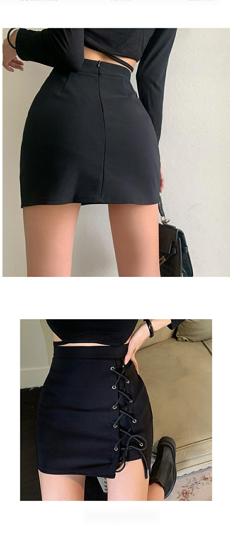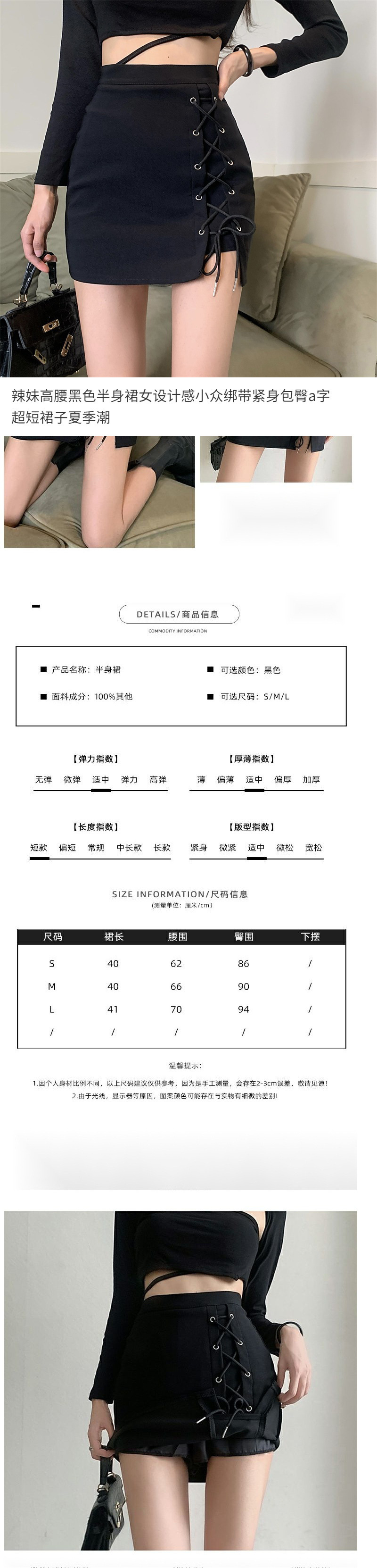 2025 핫걸 하이웨이스트 블랙 스커트 여성 디자인 틈새 스트랩 타이트 힙 커버 A라인 미니 스커트 여름스토어 가기