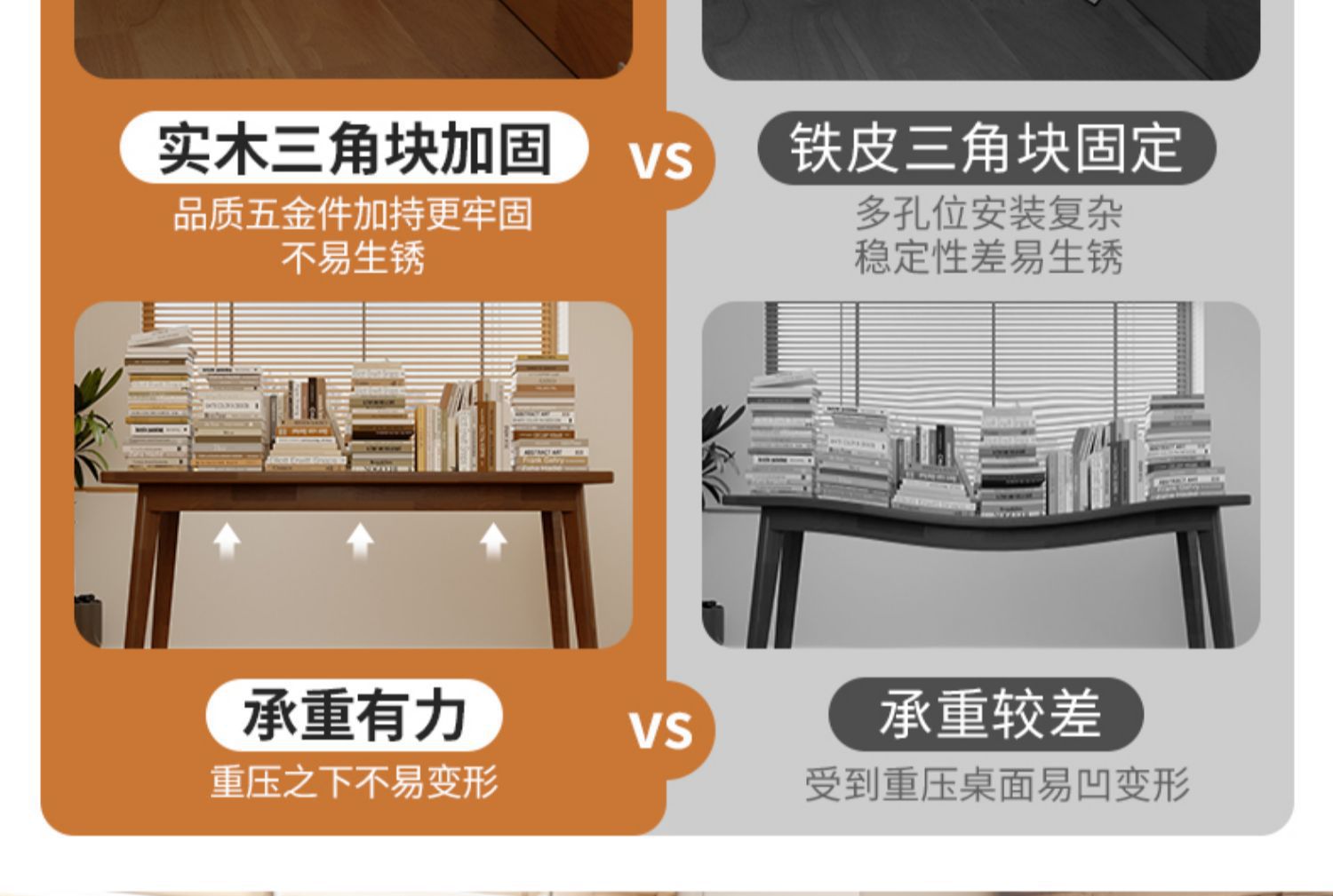 实木书桌书架一体家用卧室靠墙办公桌子简约现代小型电脑桌工作台