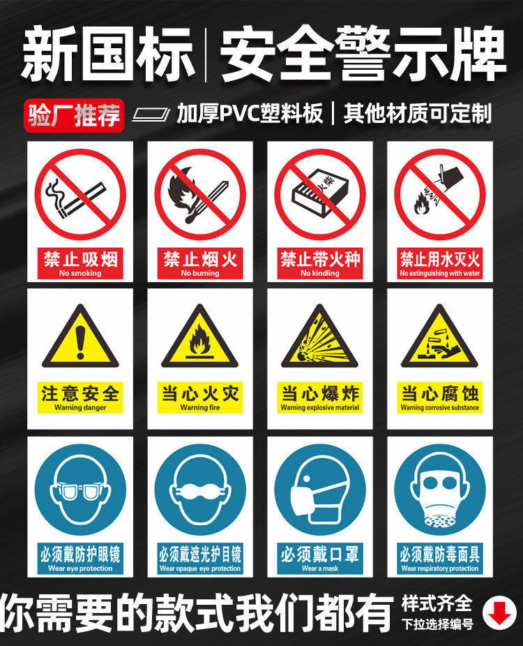 맞춤형 PVC 알루미늄 플레이트 반사 안전 간판 창고 작업장 금연 감전 안전 경고 표지판 조심스토어 가기