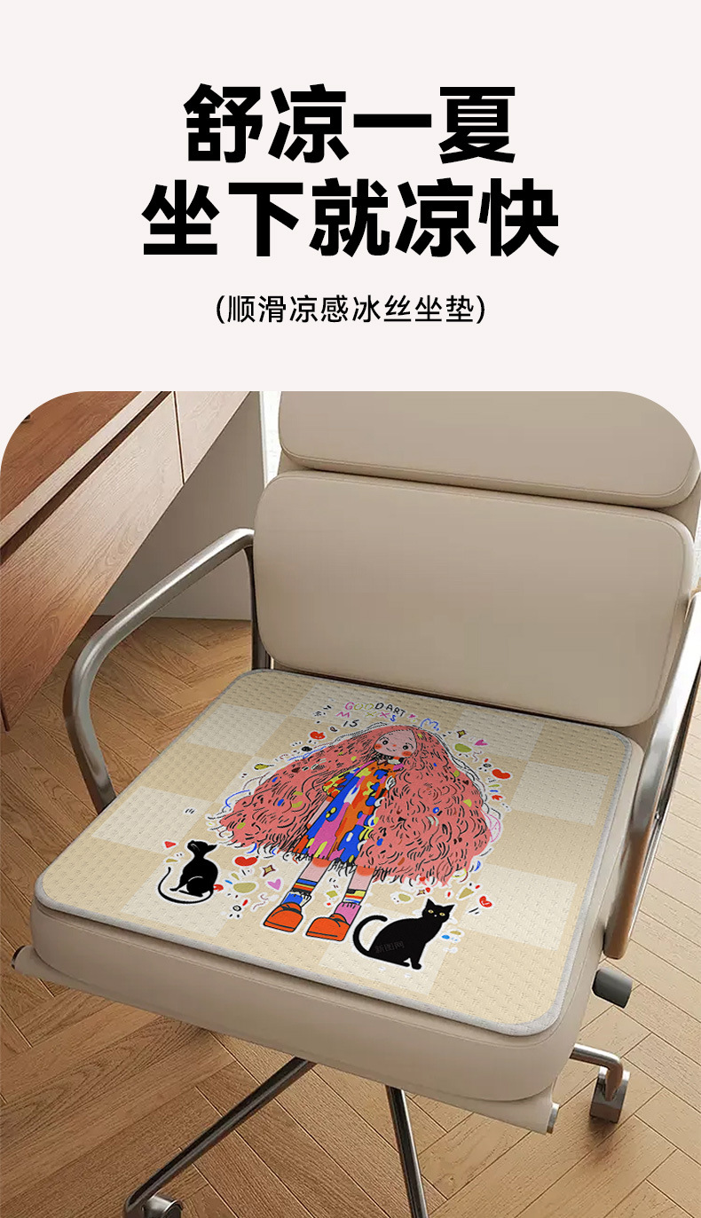 만화 창조적 인 여름 아이스 실크 쿠션 사무실 편안한 통기성 쿨 매트 미끄럼 스무디 매트 쿠션스토어 가기
