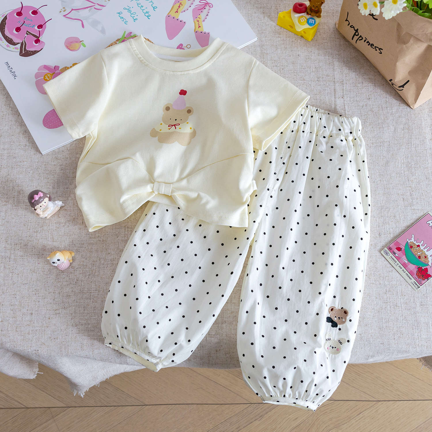 소녀 세트 2025 여름 새 아기 만화 반팔 티셔츠 얇은 안티 모기 바지 투피스 어린이 여름 원피스스토어 가기