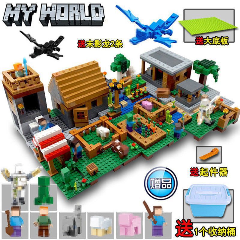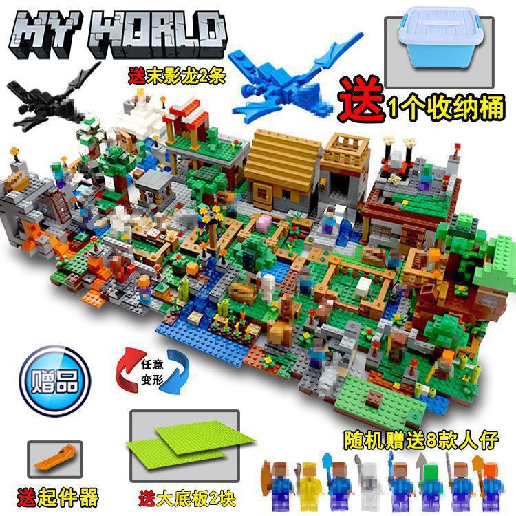 레고 마인크래프트 빌딩 블록 장난감 조립 다이어그램 마을 집 작은 입자 어린이 교육 빌딩 블록 소년과 호환 가능스토어 가기