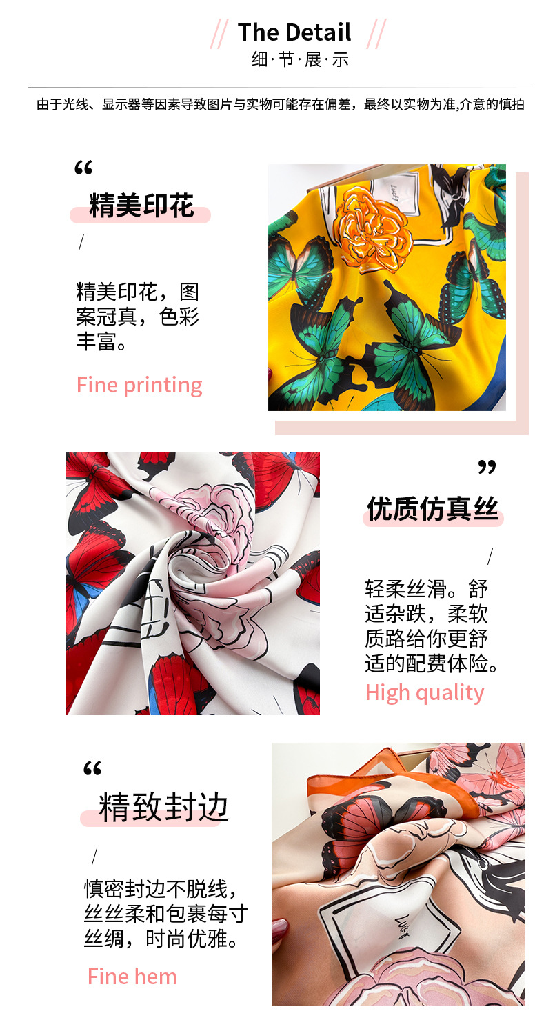 나비 댄스 플라워 라임 프린트 실크 스카프 스퀘어 스카프 고급 감각 목도리 전문 올 매치 넥 작은 스퀘어 스카프 머리 스카프 여성용 스카프