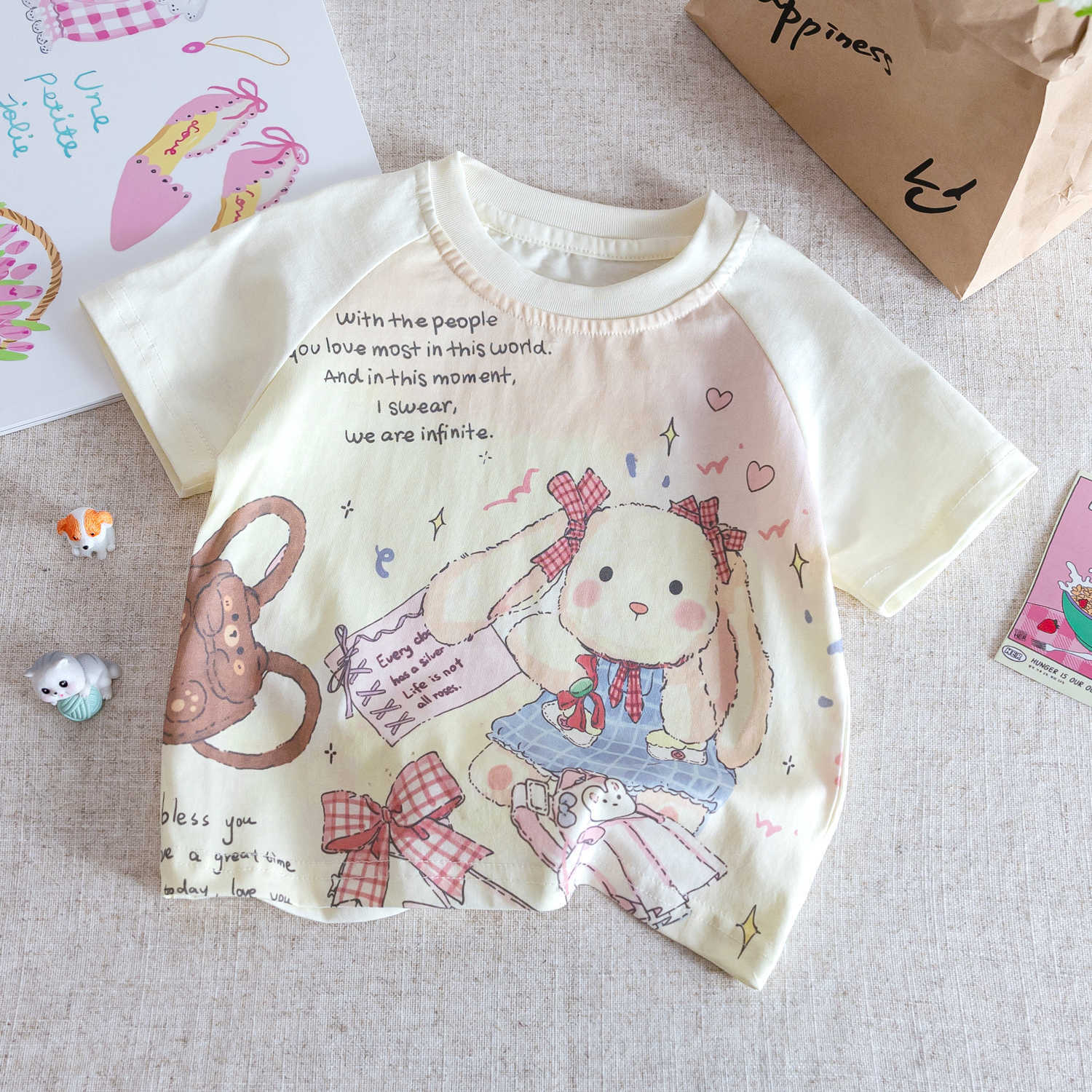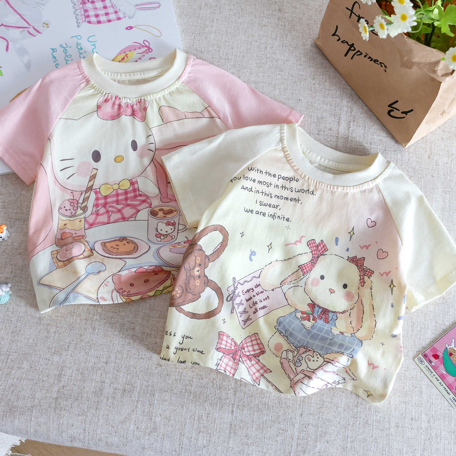 여자 반팔 티셔츠 여름 새로운 귀여운 달콤한 만화 인쇄 반팔 옷 아기의 서양식 대비 컬러 탑스토어 가기