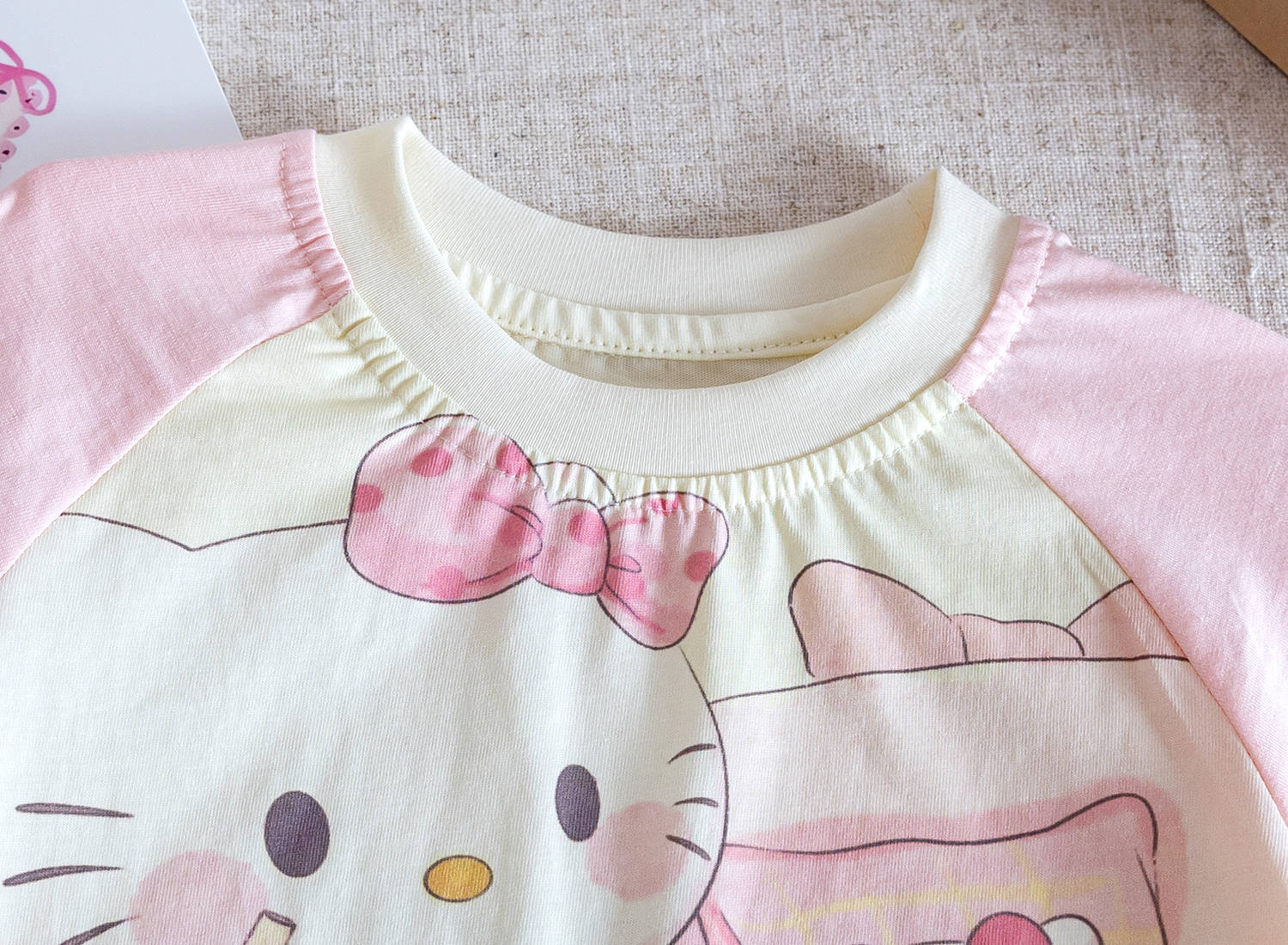 여자 반팔 티셔츠 여름 새로운 귀여운 달콤한 만화 인쇄 반팔 옷 아기의 서양식 대비 컬러 탑