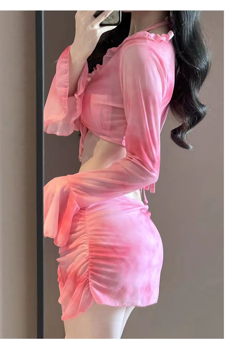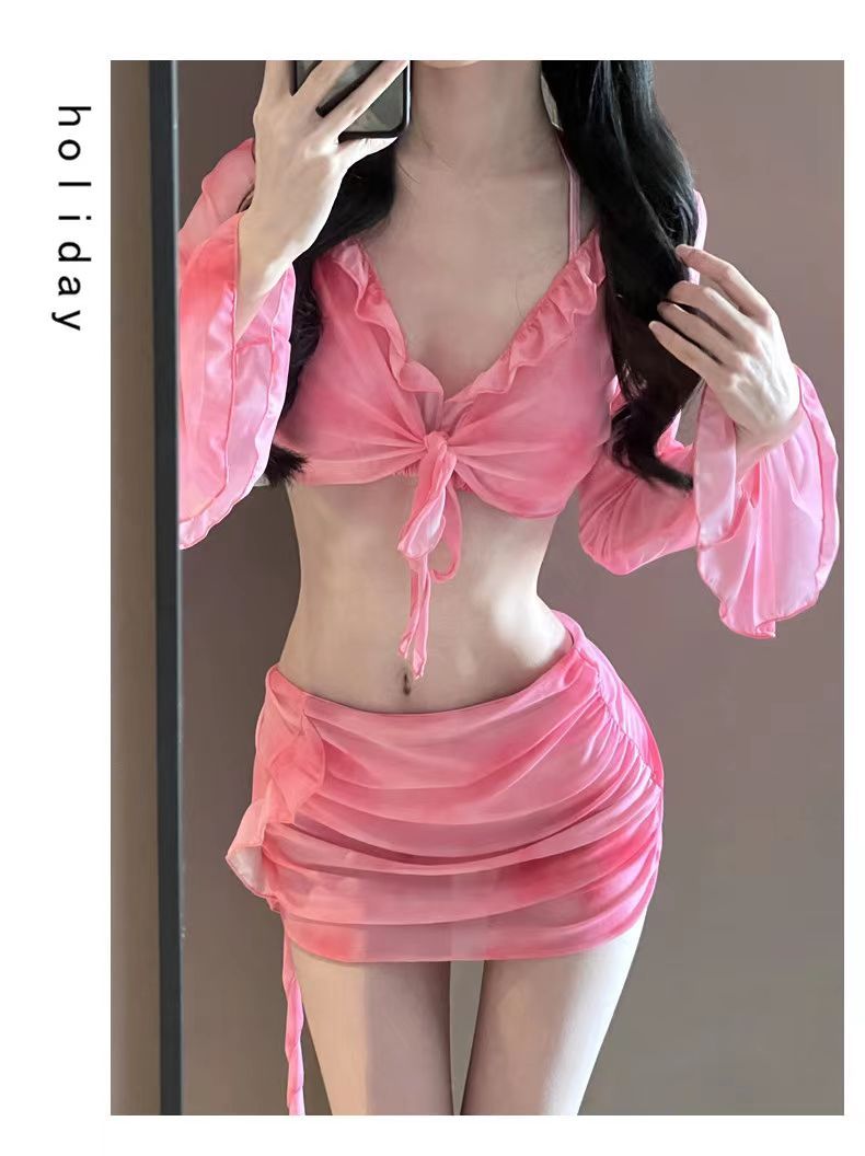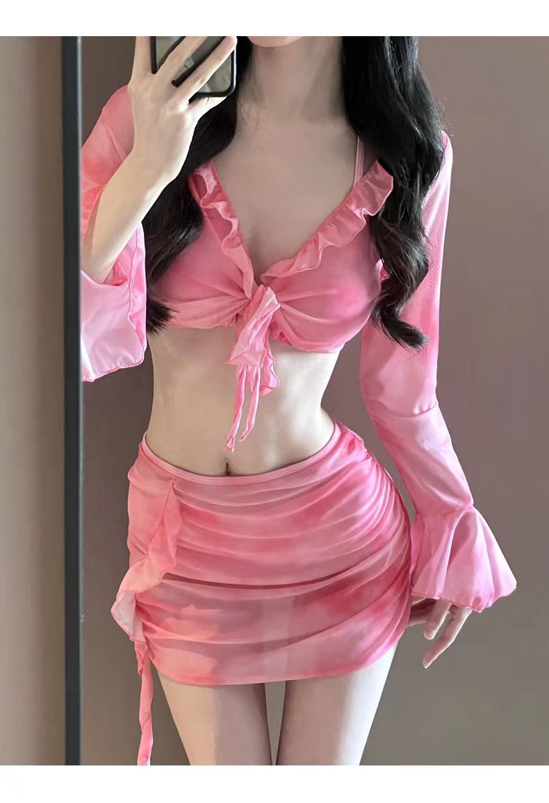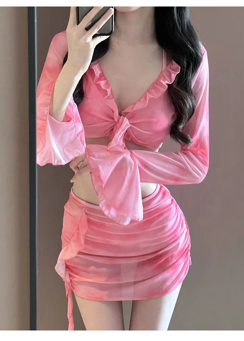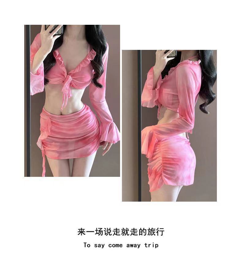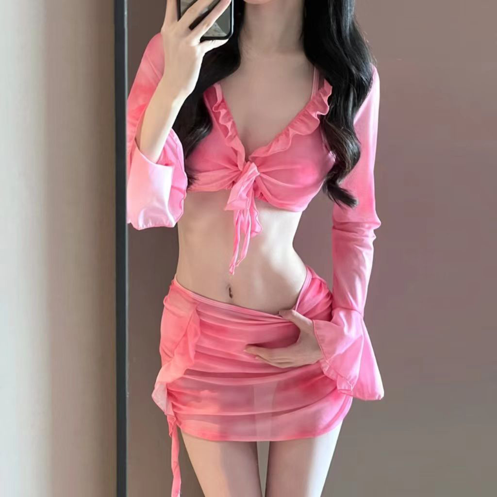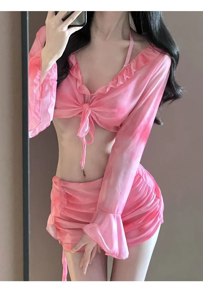 여자 비키니 수영복 스플릿 긴팔 4 피스 세트 섹시 스파이스 소녀 도파민 순수한 욕망 온천 휴일 수영복