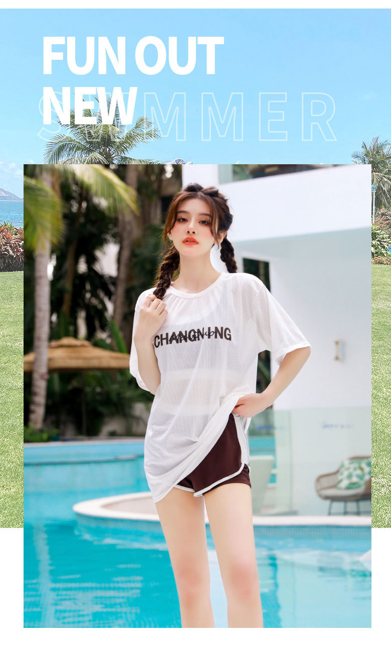 여성용 스플릿 수영복, 고급, 보수적, 슬리밍, 배 커버, 자외선 차단, 복서 3피스 슈트, 스포츠, 해변 휴가, 온천욕