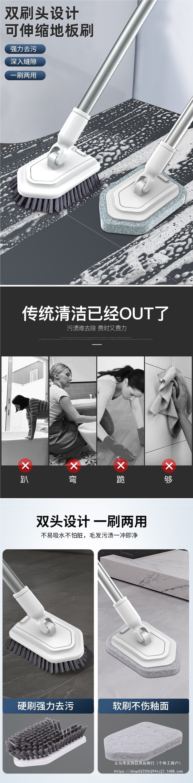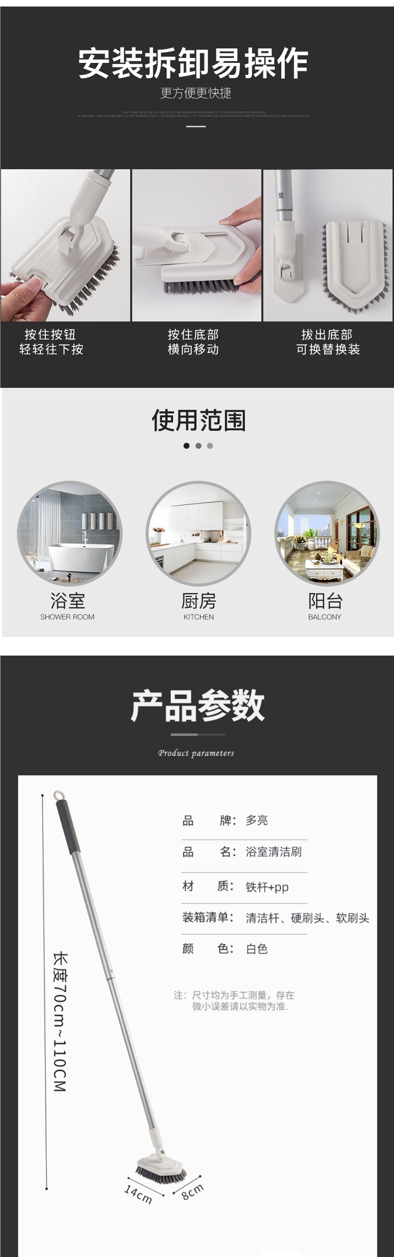 • 긴 손잡이 바닥 브러시 + 욕실 물고기 비늘 천*5 (구매 시 부드러운 브러시 교체 헤드 무료 제공)
