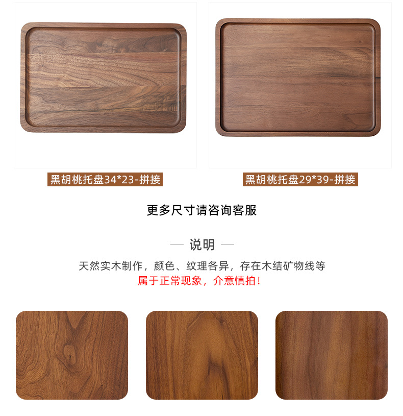北美黑胡桃木茶盘实木托盘长方形木盘子咖啡简约木质餐盘酒店家用