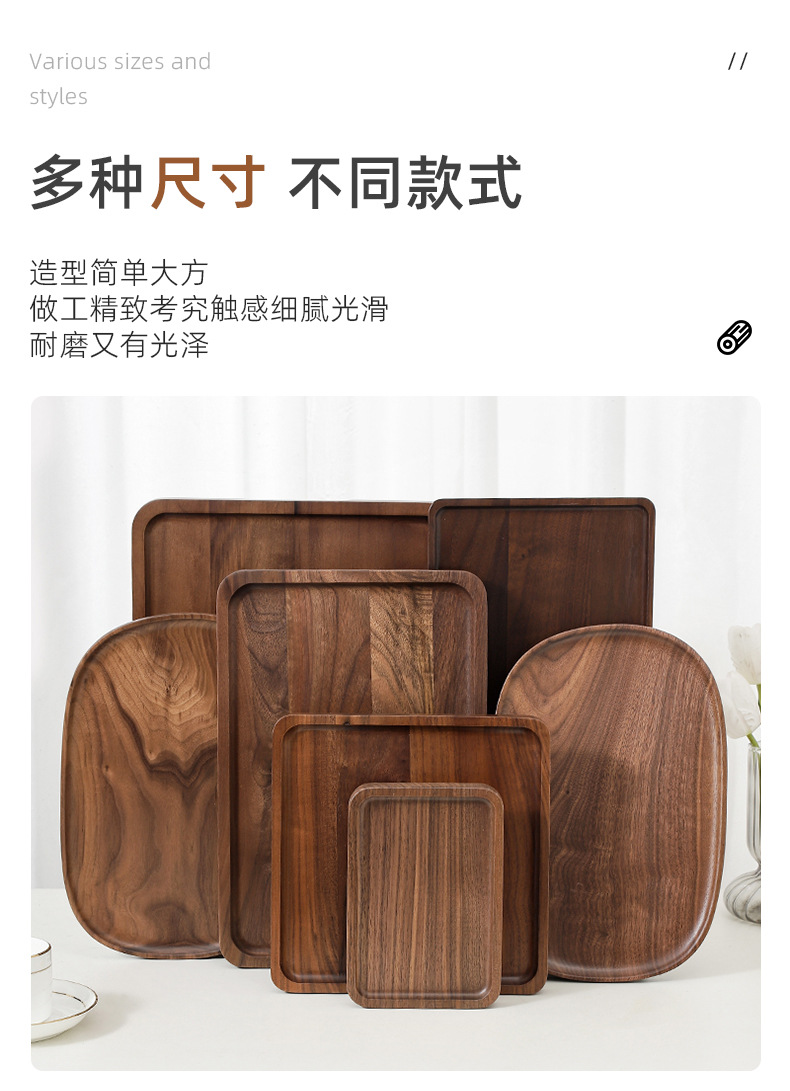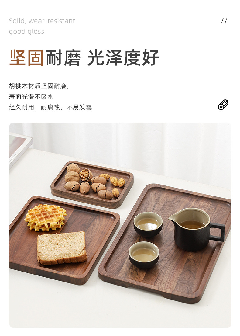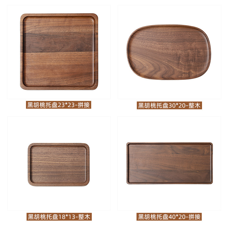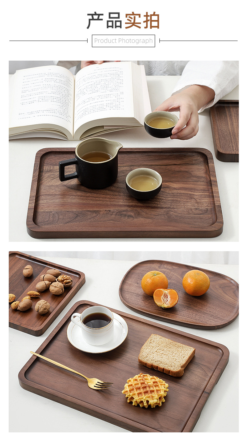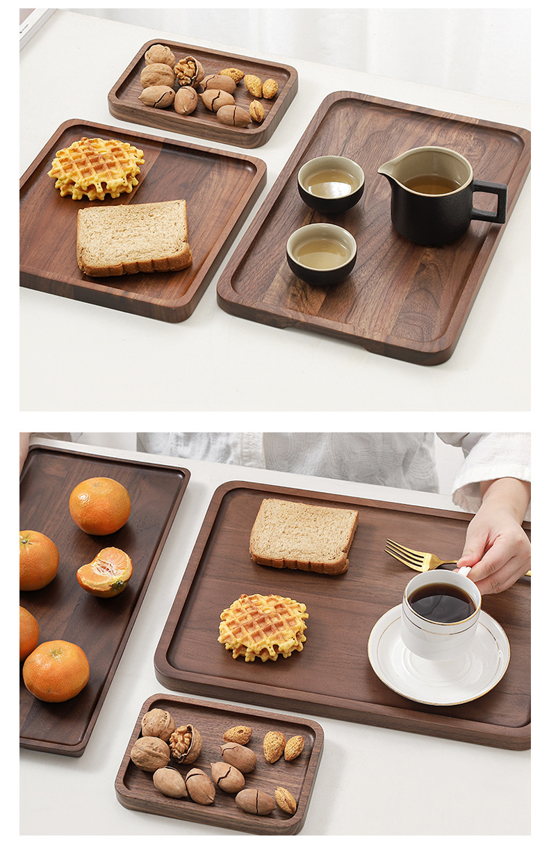 검은 호두 트레이 직사각형 나무 트레이 차 트레이 단단한 나무 커피 케이크 트레이 나무 차 세트 트레이