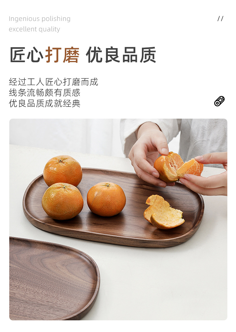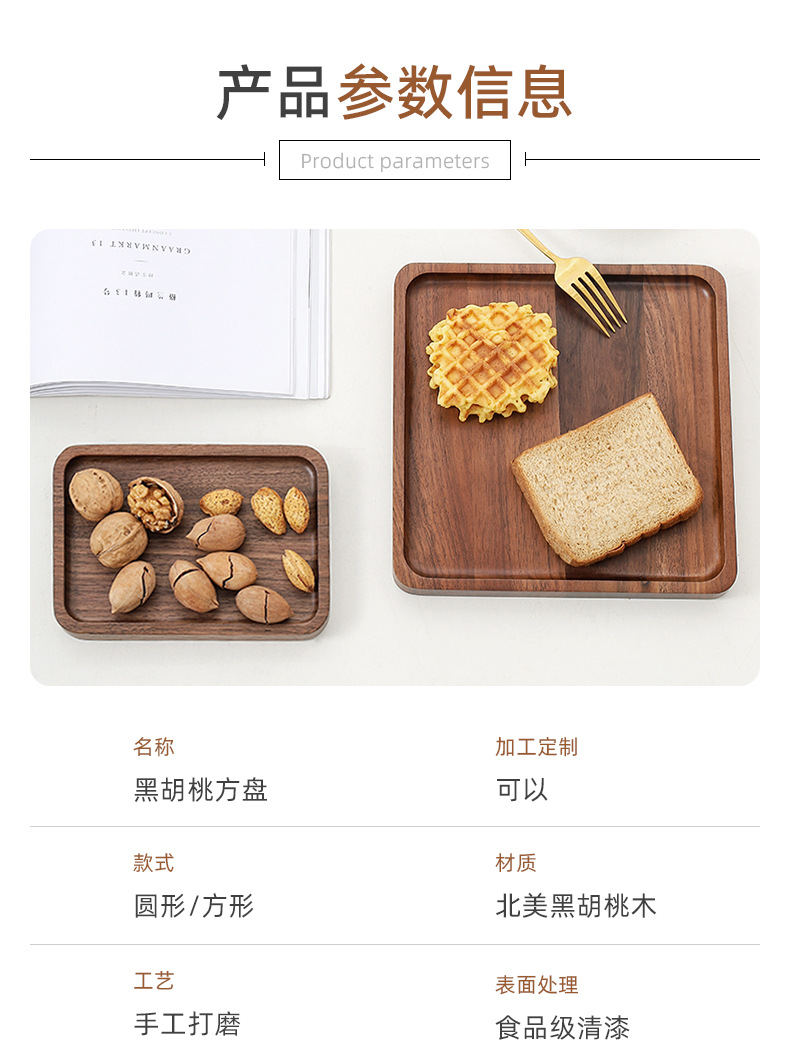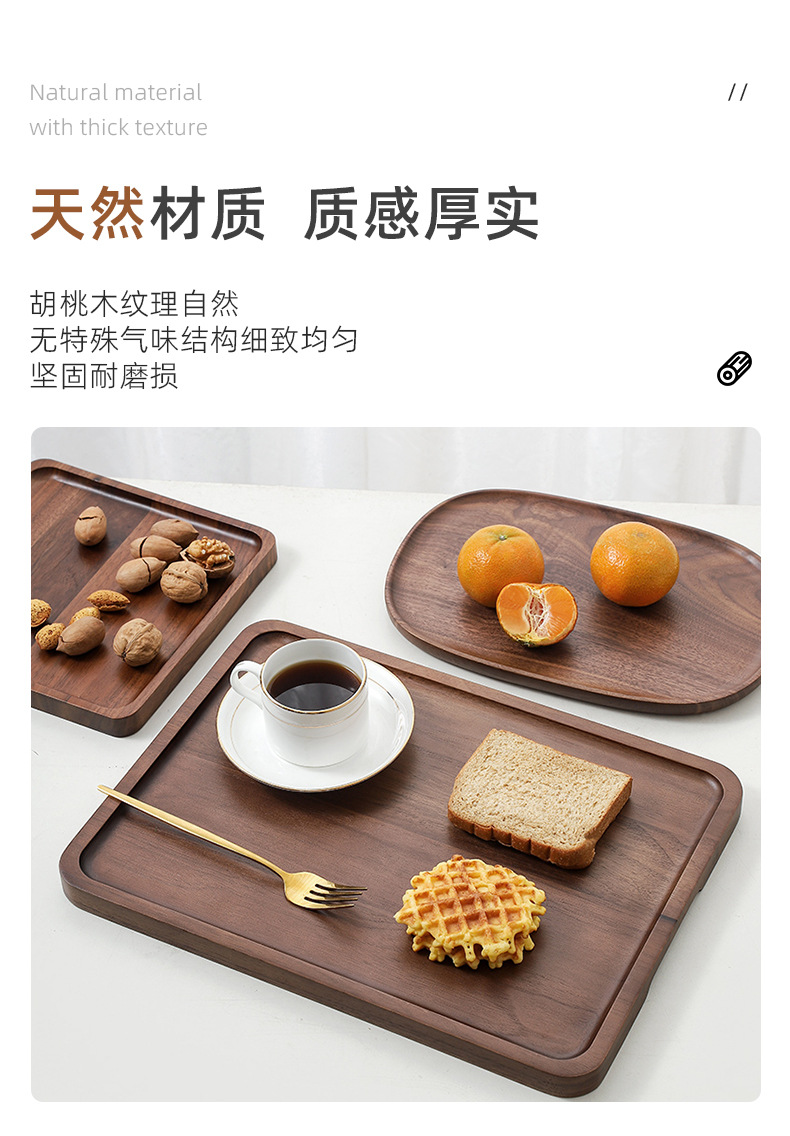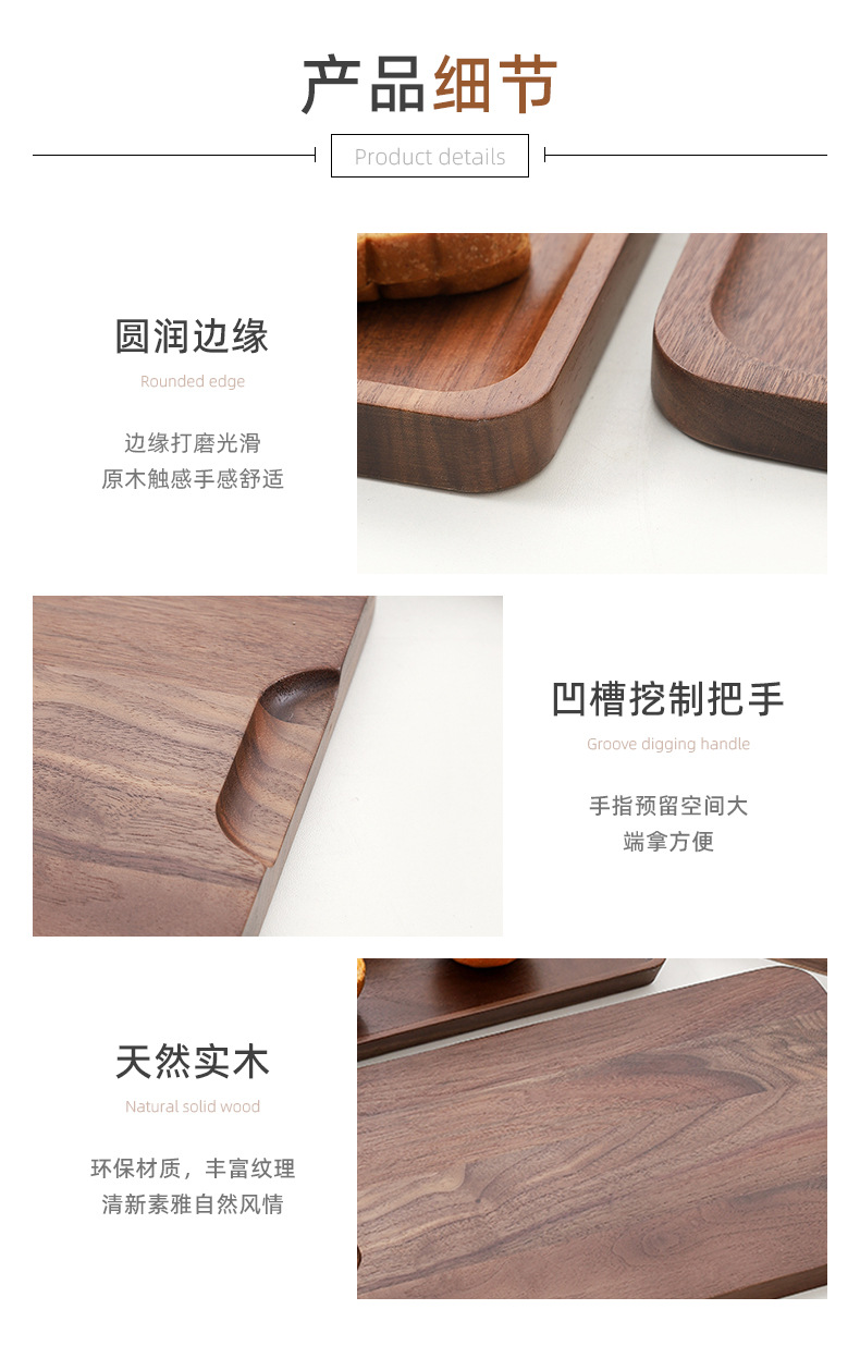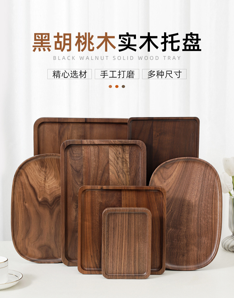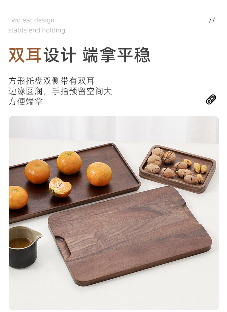 黑胡桃木托盘长方形茶点水果木盘实木咖啡蛋糕托盘木质茶具托盘