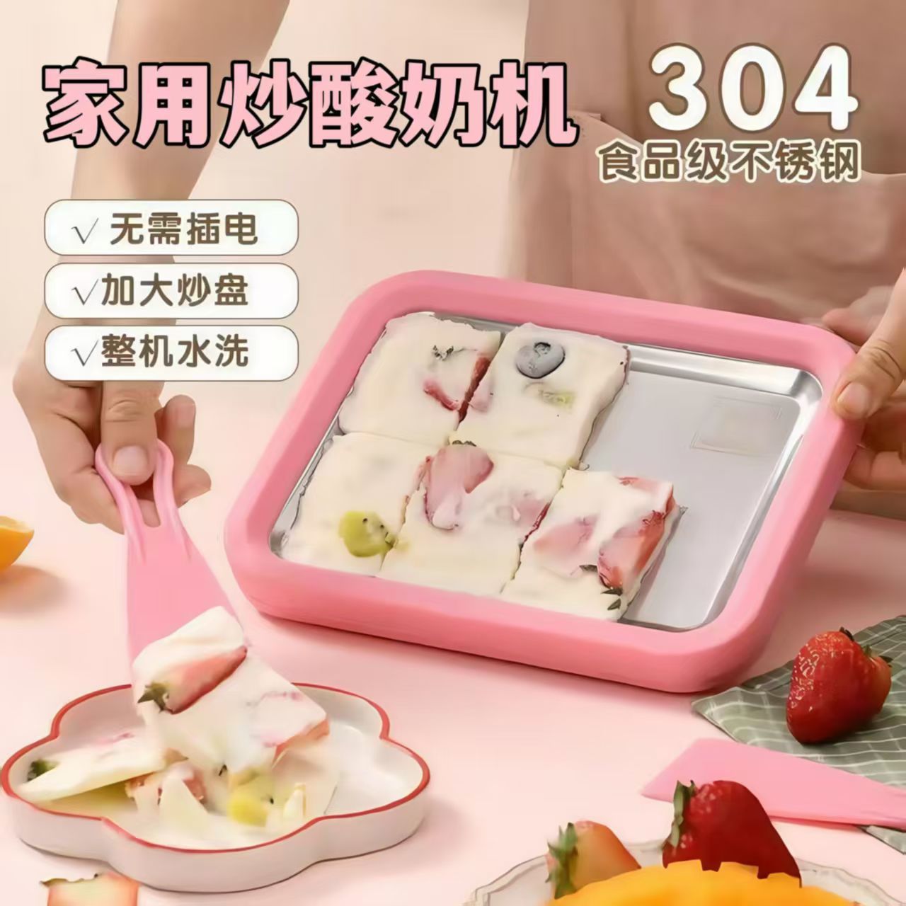 요구르트 기계 튀긴 얼음 기계 스테인레스 스틸 가정용 튀긴 요구르트 무료 플러그인 작은 튀긴 아이스크림 아이스크림 기계
