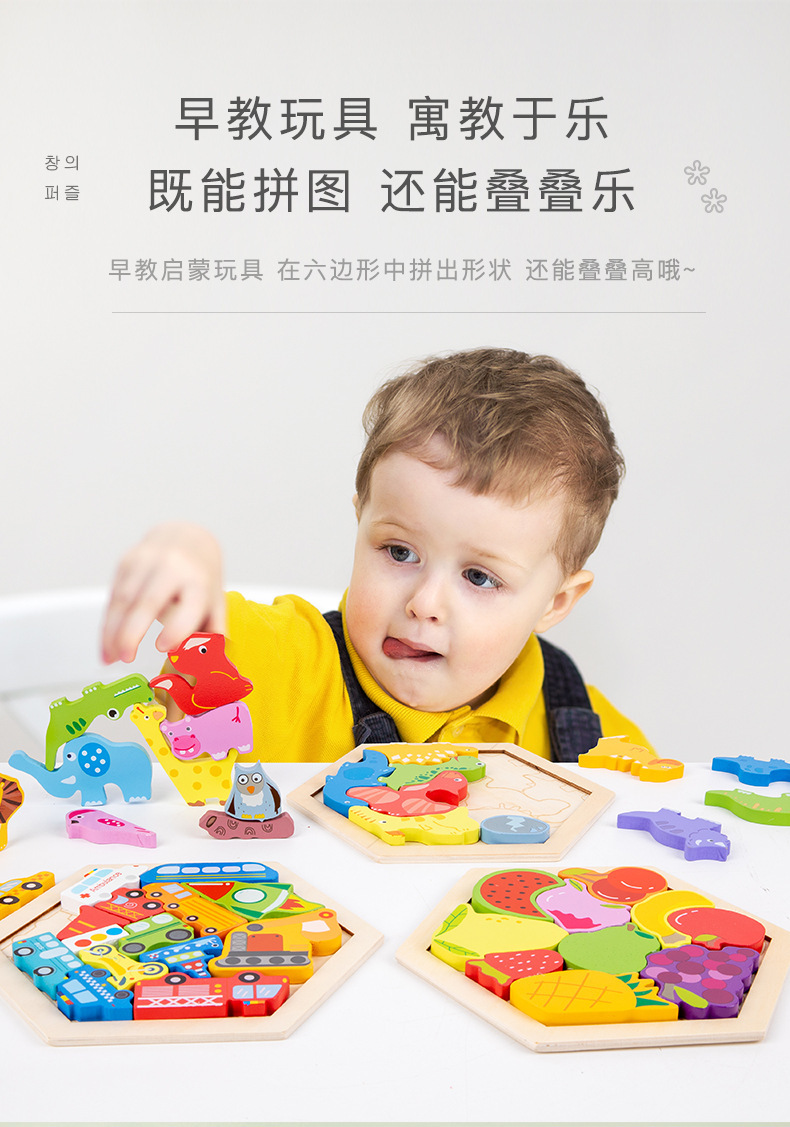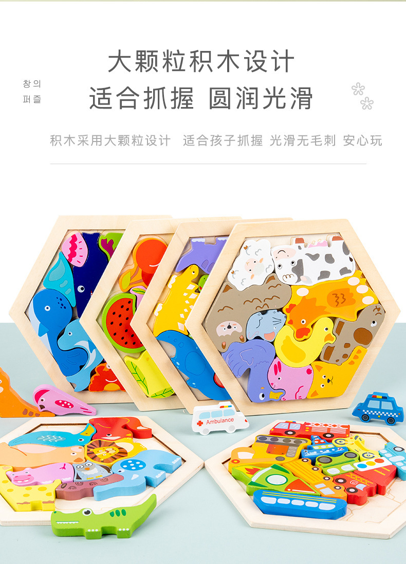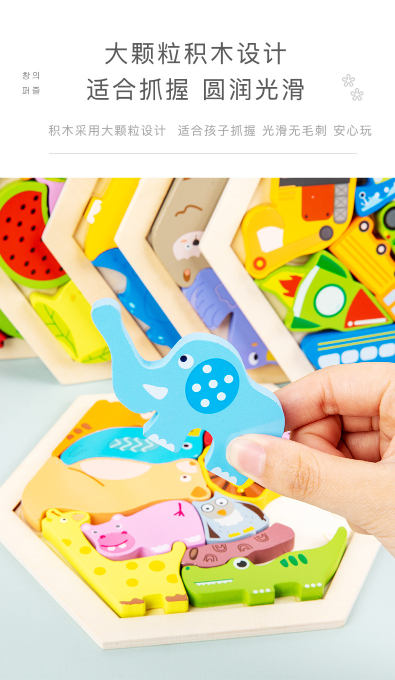 어린이를 위한 나무 교육 창의적 3차원 만화 퍼즐, 수동 및 두뇌 능력 훈련, 모양 조립 교육 장난감스토어 가기
