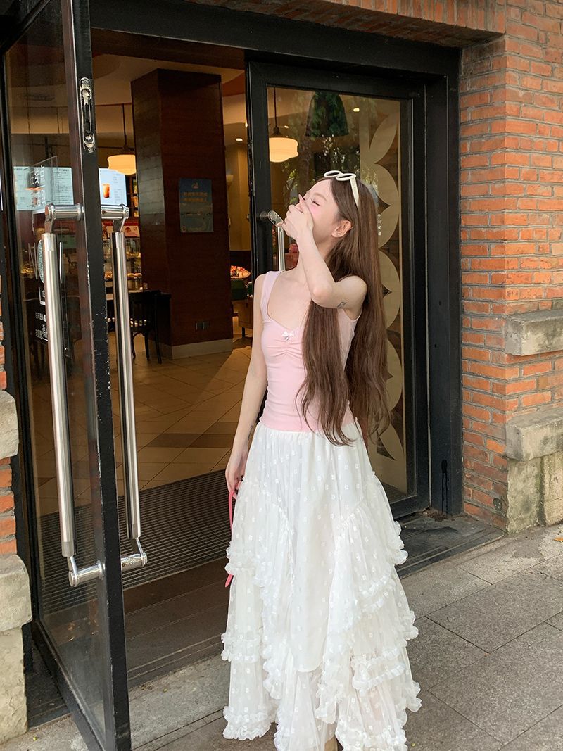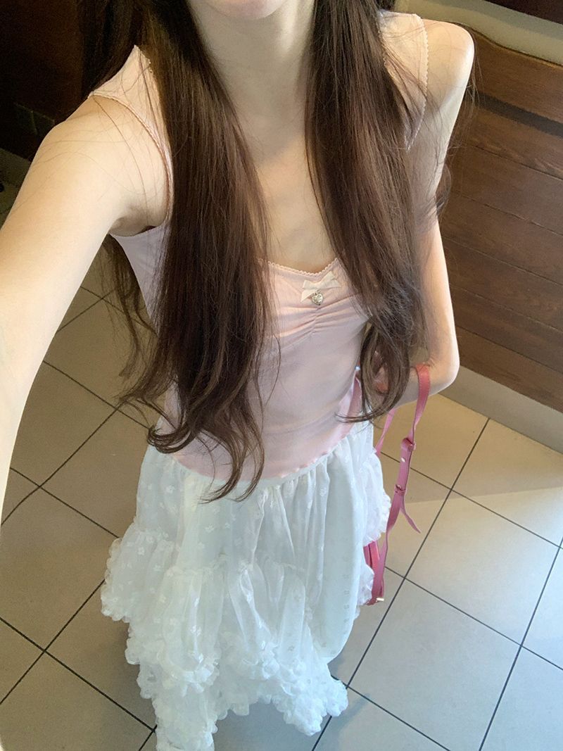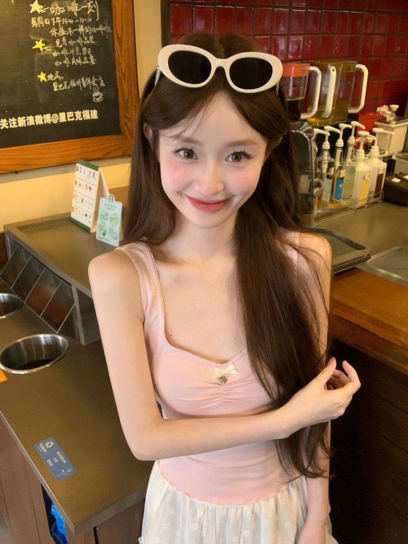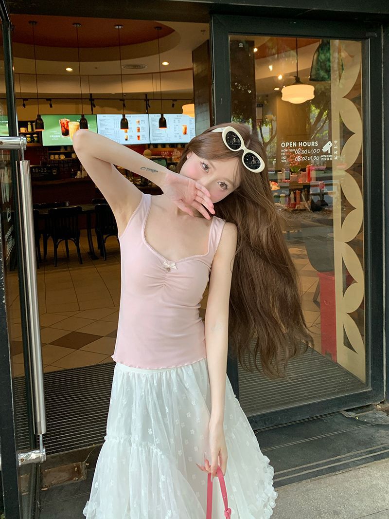 순수한 욕망 스타일 레이스 스퀘어 칼라 카미 솔 여성용 여름 내복 외복 슬림핏 슬리밍 슬리밍베이스 탑